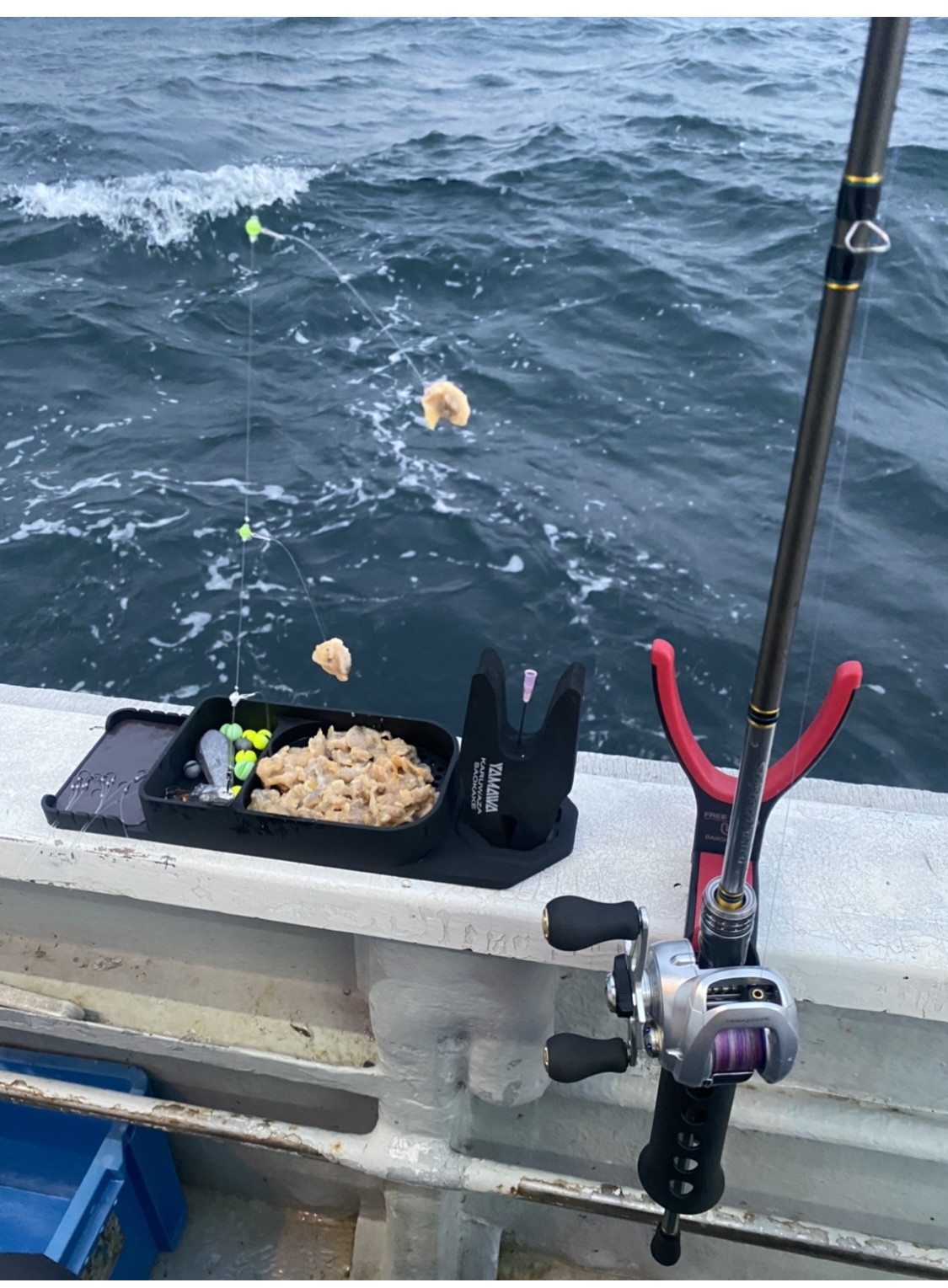 今回は国崎の幸丸さんにカワハギ釣り行ってきました。国崎はアンカーを下ろして船を固定するかかり釣りスタイルです。いつものように集魚板を付けて釣りをしていたのですが、やはり潮で仕掛けがナナメに入るので非常に釣りづらい。対策として集魚板を外し中オモリの2.5号を2つ取り付けただけの仕掛けにしました。そこからアタリが出せるようになり最終で15枚の釣果で納竿となりました。いろんな状況に対応できる引出しがたくさん欲しいです!
