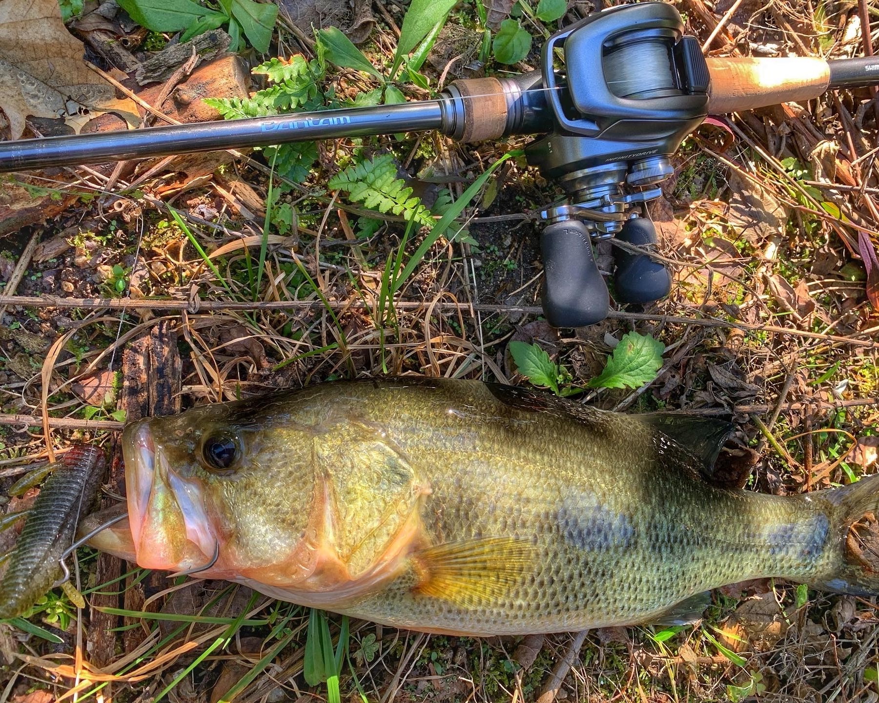 残り1時間の帰る間際で、苦し紛れのヤミー4.5ノーシンカーとDUOリュウキスピナー投入!小バスが群がり15cm~30cm程の小バス17匹に遊んでもらいました!!ラストに一誠 沈み蟲3.2インチを投入でなんとか40クラスを1本追加で終了しました!(^^♪秋らしい数釣りが出来て満足ですが、魚の居所がハマらなければボウズもありえた1日でした|д゚)釣れて良かったです!!