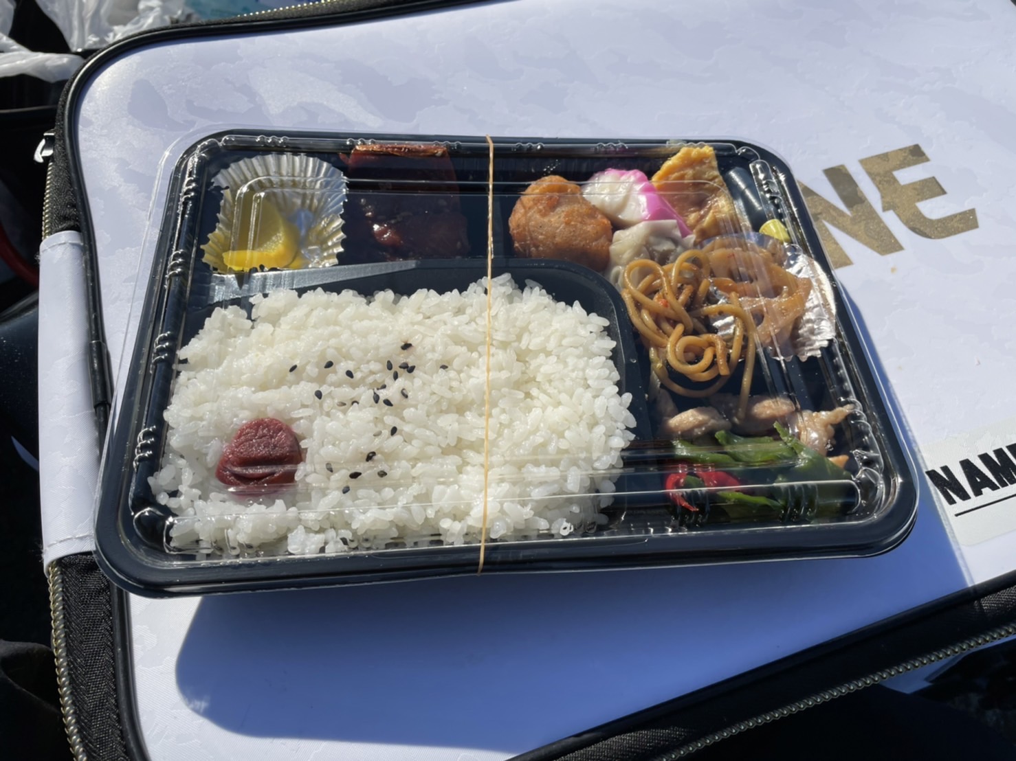 朝からエサは盗られますがアタリはでない状態。8時ごろ弁当が到着。ここのお弁当は女将さんが毎日、早朝から手作りしているのでとっても美味しいです。なので私は帰港後に食べる為に毎回妻の分もあわせて4つ注文してます。