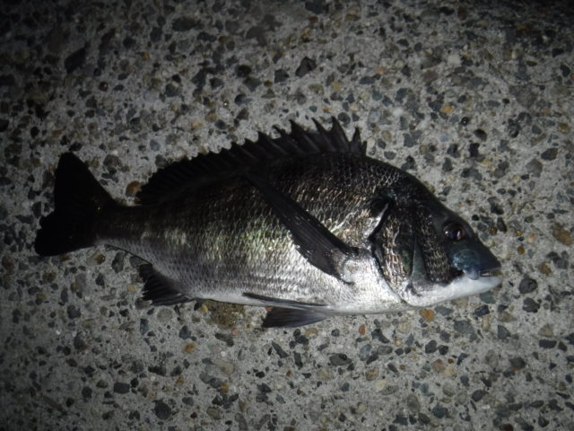 南知多周辺に、堤防フカセに行ってきました!上潮で満潮にからむタイミングで釣りをスタート。エサを撒きはじめると、アジやフグが釣れてきます。釣りを始めて2時間ほどでチヌらしきアタリがありましたが、敷石にハリスが触れてラインブレイク。暗くなり始めるとアジの回遊があり、数釣りを楽しめました。最後に45㎝ほどのクロダイが釣れたところで納竿としました。(使用したエサ チヌパワーVSP オキアミ3㎏ くわせオキアミSP)