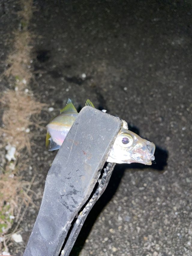 そのあと4ヶ所回るも反応が薄いか小さいかフグか。そんなこんなでラストのポイント。水が白く濁ってますがすぐにヒット。ようやくいつものサイズが釣れてくれました。