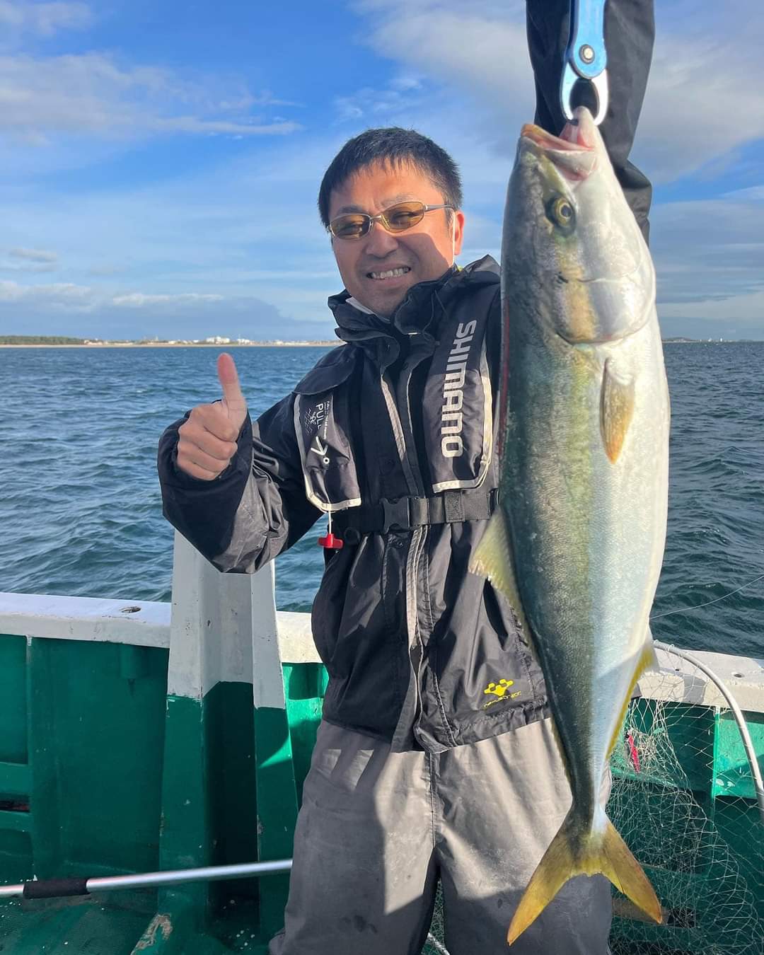 大翔丸さんに前回のリベンジのサワラキャスティングに行って来ました!29日の釣行予定でしたが休船の為、30日になりました!予報も爆風予報…。出船は5時!夜明け前から釣り開始!かなりの爆風です…。朝一は不発…。時間だけが過ぎる。時折、ボイルはあるが…。9時頃になり潮目にGコントロールをキャスト!待望のアタリ!上がって来たのはワラサ(^^)その後、また沈黙。鳥も多く騒がしく雰囲気は良いが喰わない。11時を過ぎ戻りながら帰りますとアナウンス>.<すると鳥山へ船が走り出す!すると前の方がワラサGET!そしてストップフィッシング!が…帰る途中にサワラがジャンプしたとのことで再度キャスト!メタルマジックTG40gの水面早引き!すると…ヒット(≧▽≦)上がって来たのは念願のサワラ(☆▽☆)船長に釣らせて頂いた1匹でした(。•̀ᴗ-)✧リベンジ成功!
