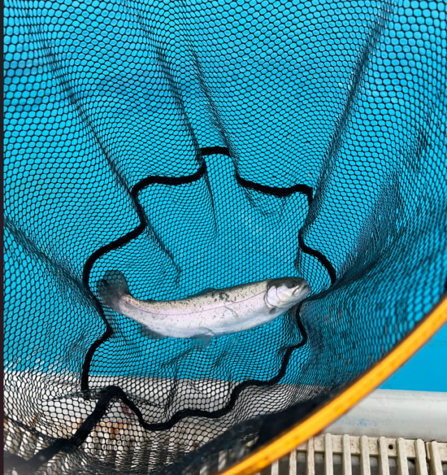 今日は状況が悪いと施設の方から事前に教えて貰えていたのでボウズ覚悟でしたが周りの方々がバンバン魚を上げていました!これは釣れる!と確信も持ちいざ挑戦!前日の雨で魚が沈み気味だったので1.8グラムのスプーンを使ってボトムを意識すると早速アタリが!開始15分でまさかのボウズ逃れ!その後すぐ放流があり、アタリまくりで楽しい休日となりました!