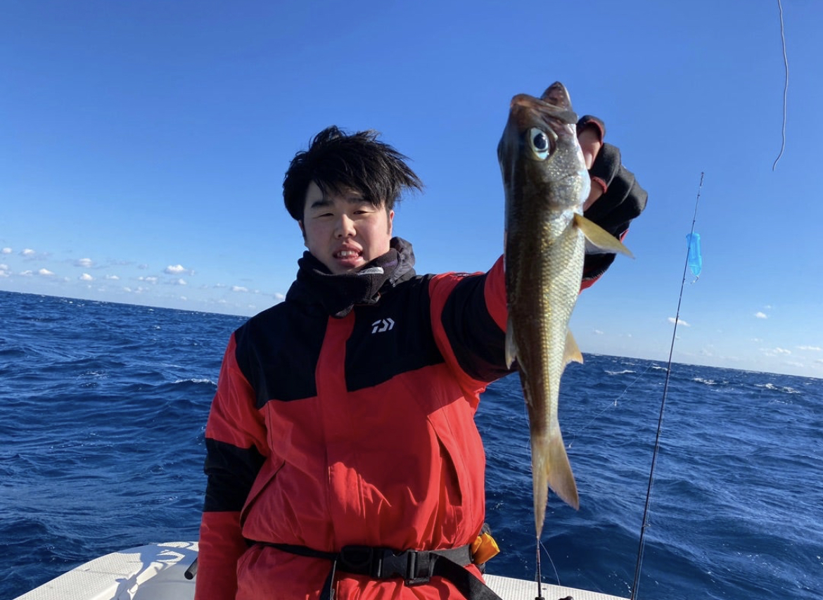 しかし沈黙、、あたりなし、、仕掛けを少し変えてノマセ仕掛けの上にもうひとつ針を出してそこにサンマの切り身を付けて投入。あたり!レンコダイが釣れました!サンマの切り身に変えてすぐ釣れました!その後続かず、ちらほらアタリはあるもののなかなか釣れない、、その後なんとかウッカリカサゴとチカメキントキが釣れました。本命のマハタかクロムツが釣りたいと思いながらやっていると隣であずあずが待望のヒット!他の方はクロムツがヒット!これは期待大!釣れたのはチカメキントキでした!すると私にもアタリ!なんと!本命のクロムツが釣れました!嬉しい!その後は何も釣れず終了しました。結果はレンコダイ、チカメキントキ、ウッカリカサゴ、クロムツでした!暴風、激渋の中なんとか釣れてよかったです!