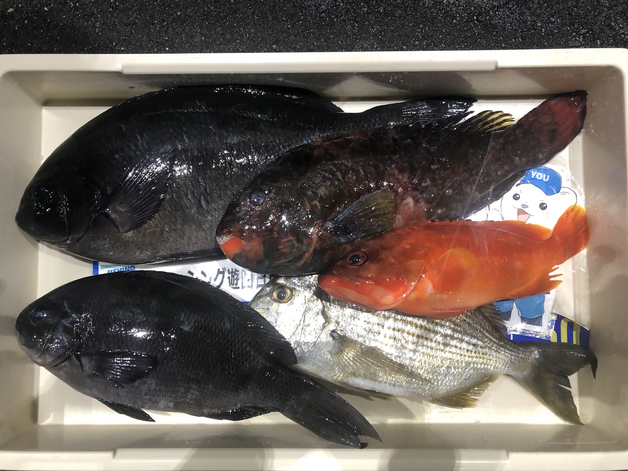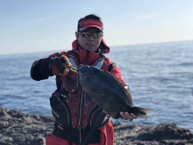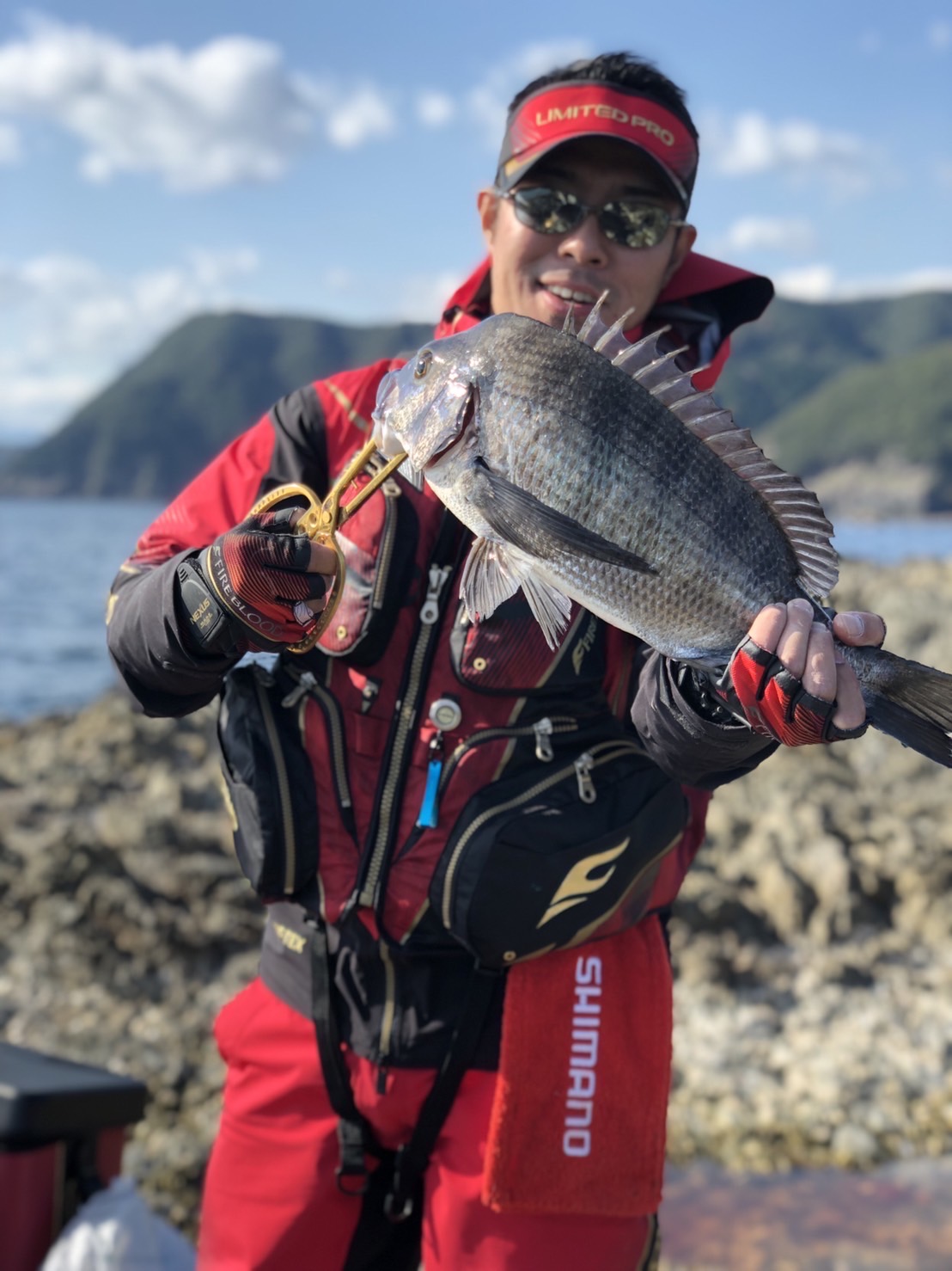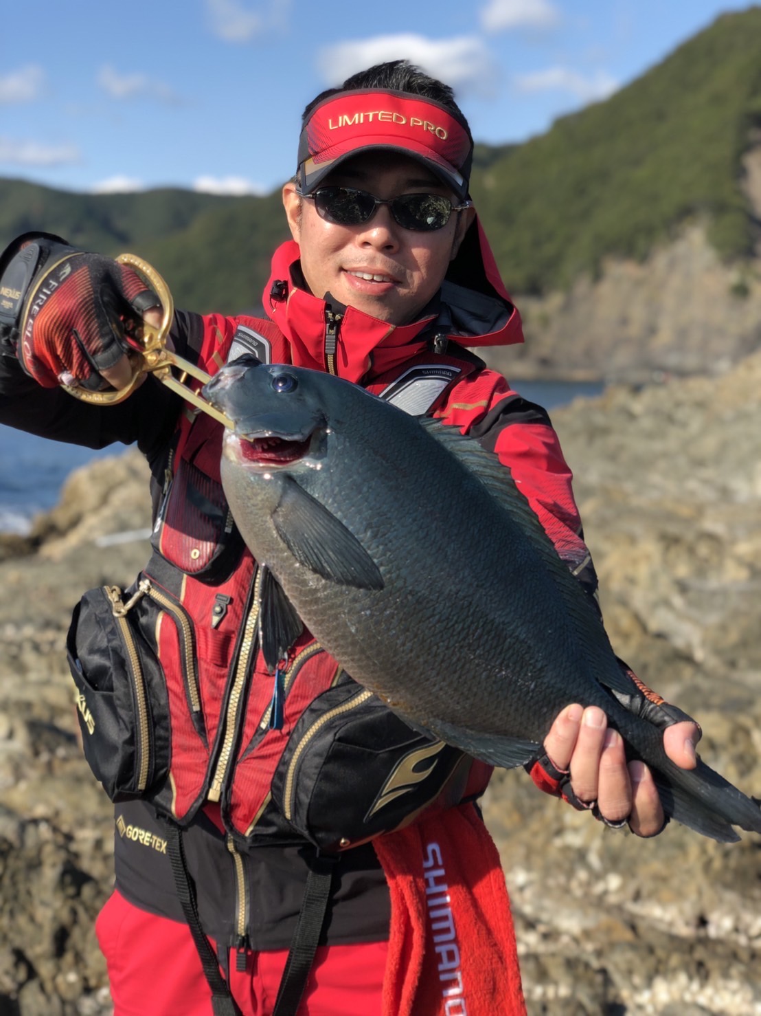 錦の岡本旅館さんにお世話になり磯釣りに行ってきました。今季2度目です。前回乗越し西でブチブチに切られたので今回も同じ磯でリベンジです。いざ釣りを初めてみると魚っ気がなくコッパも居ません。完全に寒グレ感が出ています。昼までイガミのみ。昼過ぎからは爆風になり釣りずらい状況。仕掛けを調整しながら打ち返すと目の覚めるようなアタリ。2度程突っ込まれましたが愛竿のファイアブラッド・ダイブマスターで余裕のフィニッシュ!44.5㎝の口太でした。その後磯のファイター、イスズミが掛りダイブマスターでは先ほどの余裕が無くなり針ハズレで獲れませんでした。(笑)再び流すと何故かチヌ…アイゴ無数。で、34㎝のグレでした。久しぶりに良型も釣れ満足した1日でした。
