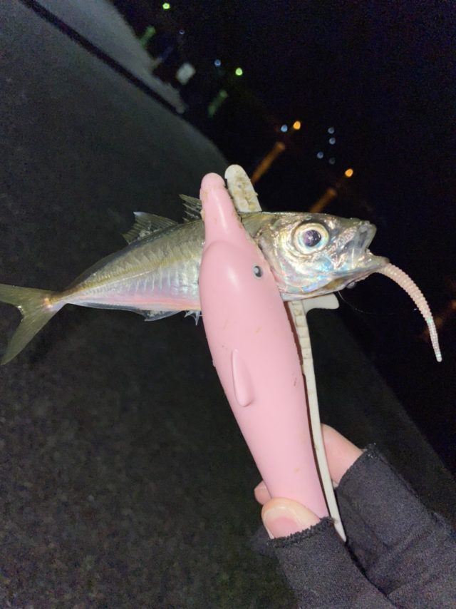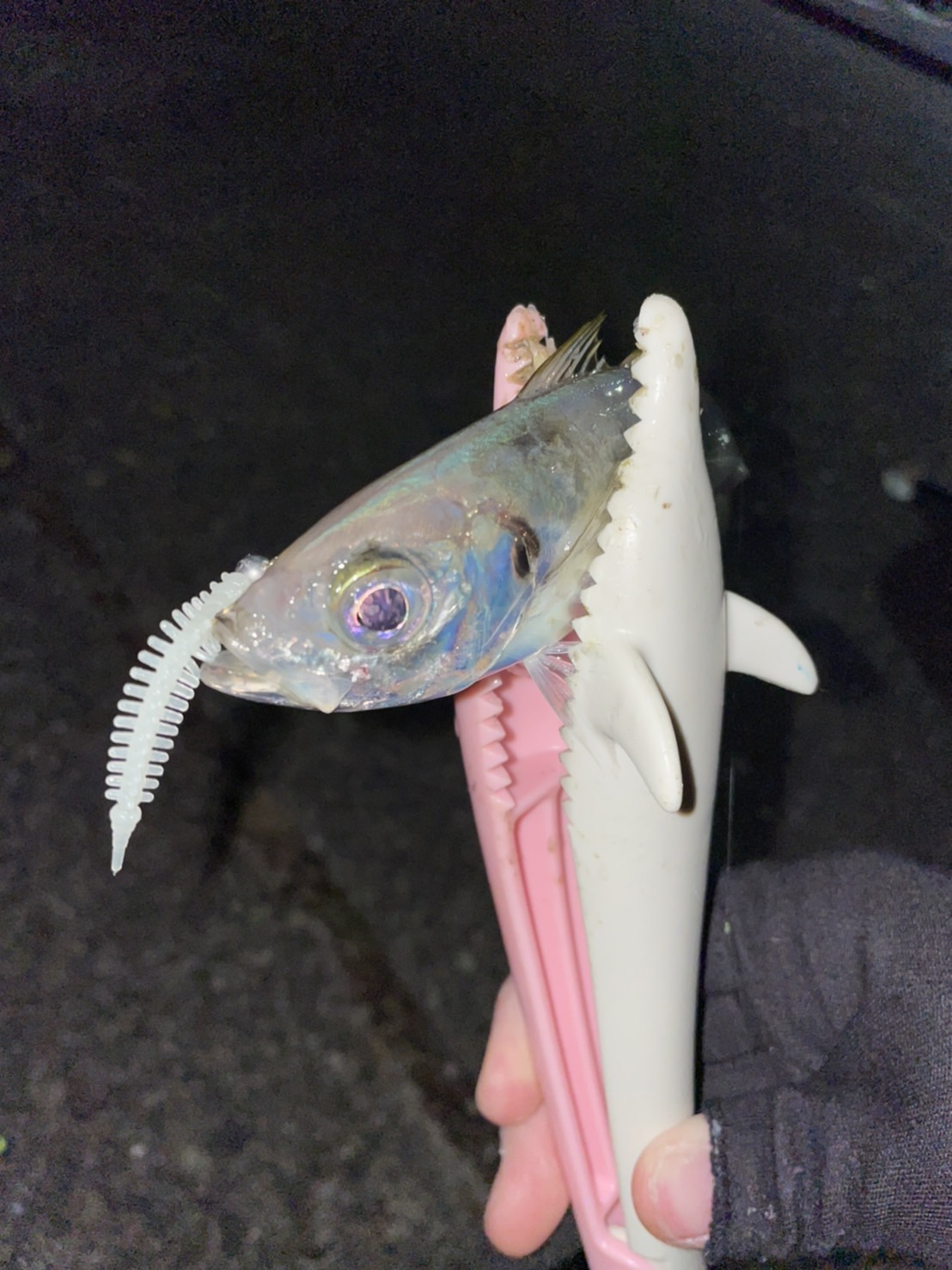 クレイジーオーシャンの海毛虫 グローカラーに変更。このワームとカラーはアジをよく寄せてくれます。ぜひ使ってみてください!