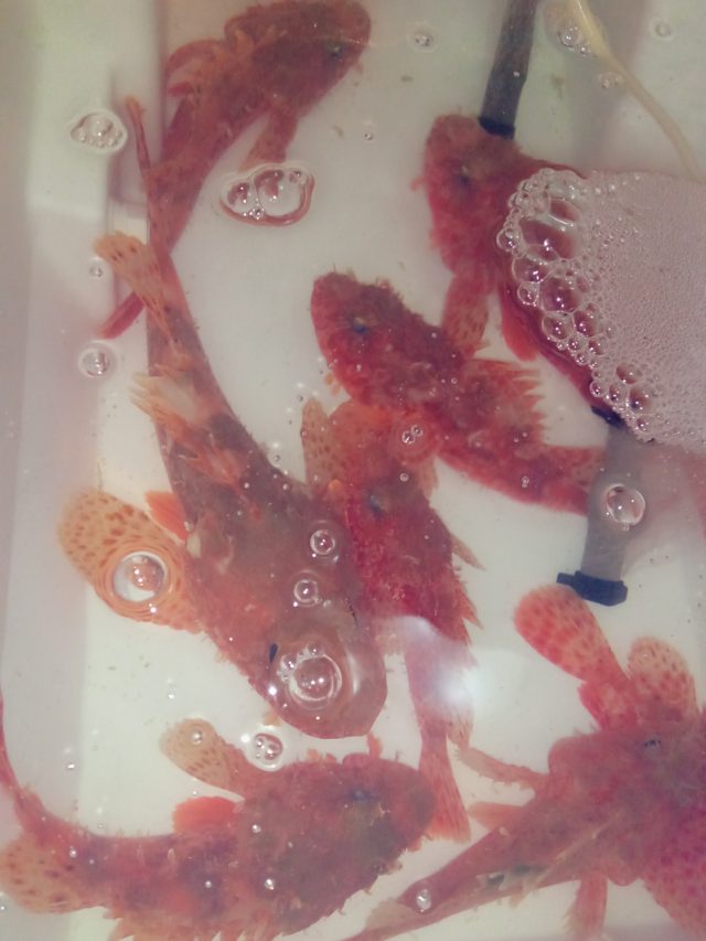 大雨&荒れ荒れの日に黒森沖へ鬼カサゴ釣りへ行ってきました。水深150㍍ラインからのスタート。天候は最悪でしたが一投目からキープサイズの鬼カサゴ!二投目はリリースサイズでしたがダブル!と魚の反応が良くコンスタントに釣れ早いうちからカンコが賑やかに。40㌢前後の鬼カサゴも二匹釣れスタートして4時間程で10匹以上の釣果。今回は全体的に小さめでしたが数釣りが楽しめ結果的には最高の釣果でした。