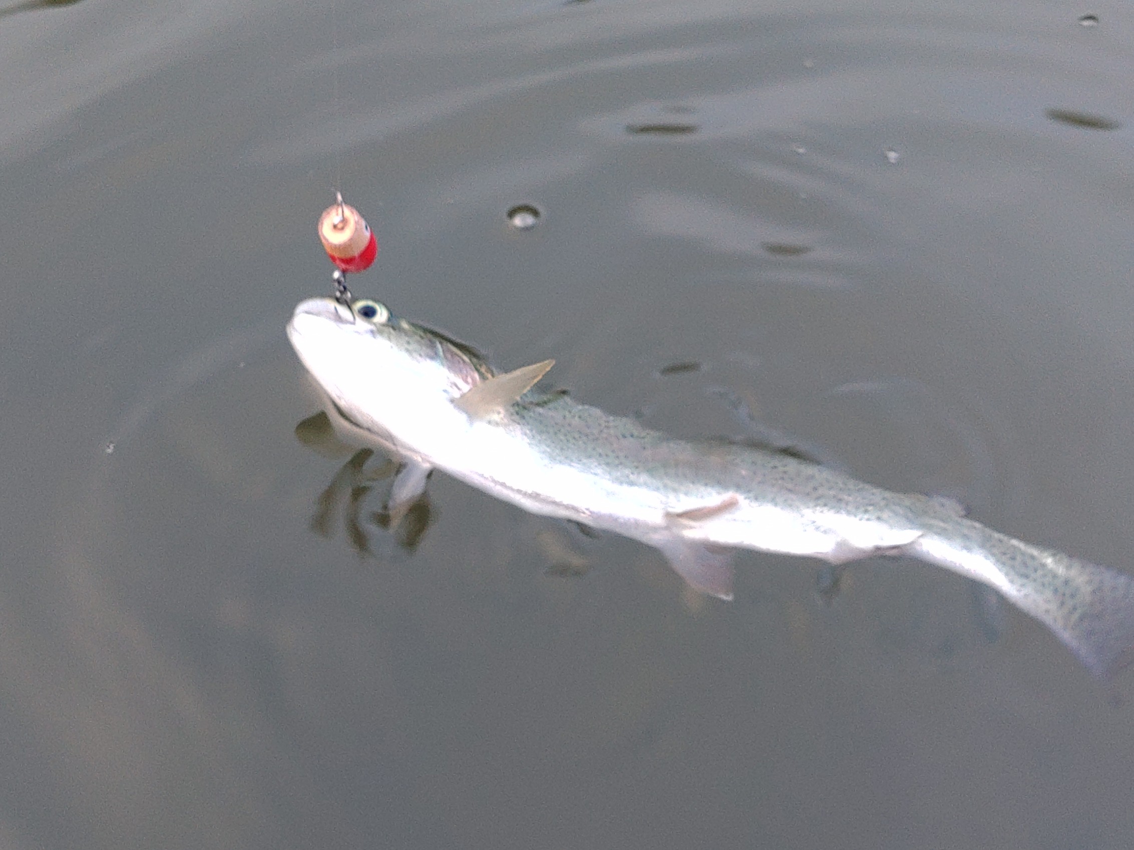9時半着で釣り開始!第一ポンドの桟橋から始めましたが、初めは割と2g前後のスプーンで底付近でのヒットが多かったですが、しばらく時間が経つと、魚は散り始めた感じがして表層のちょい下(1g前後のスプーンを着水→竿立て気味でゆっっっくり引いてくる)でヒットが連発し、それもだんだん深くなったりと、タナはバラバラな感じでした。お昼はフィッシャーマンランチを食べ(これが美味いのです!!)ゆっくりコーヒーを飲んでから後半戦スタート!段々と魚が目視できるほど表層に好反応になってきて、14時半にはトップで釣れるほどに!!サンクチュアリは夕方ペレットを撒く日があるので、後半は着水したものへの反応がバツグンに良くなります♪(撒く日はやっぱり釣れますが、撒かない日でもかなり好反応!)最後までトップウォーターでバイト丸見えを楽しみ、16時半納竿しました!!