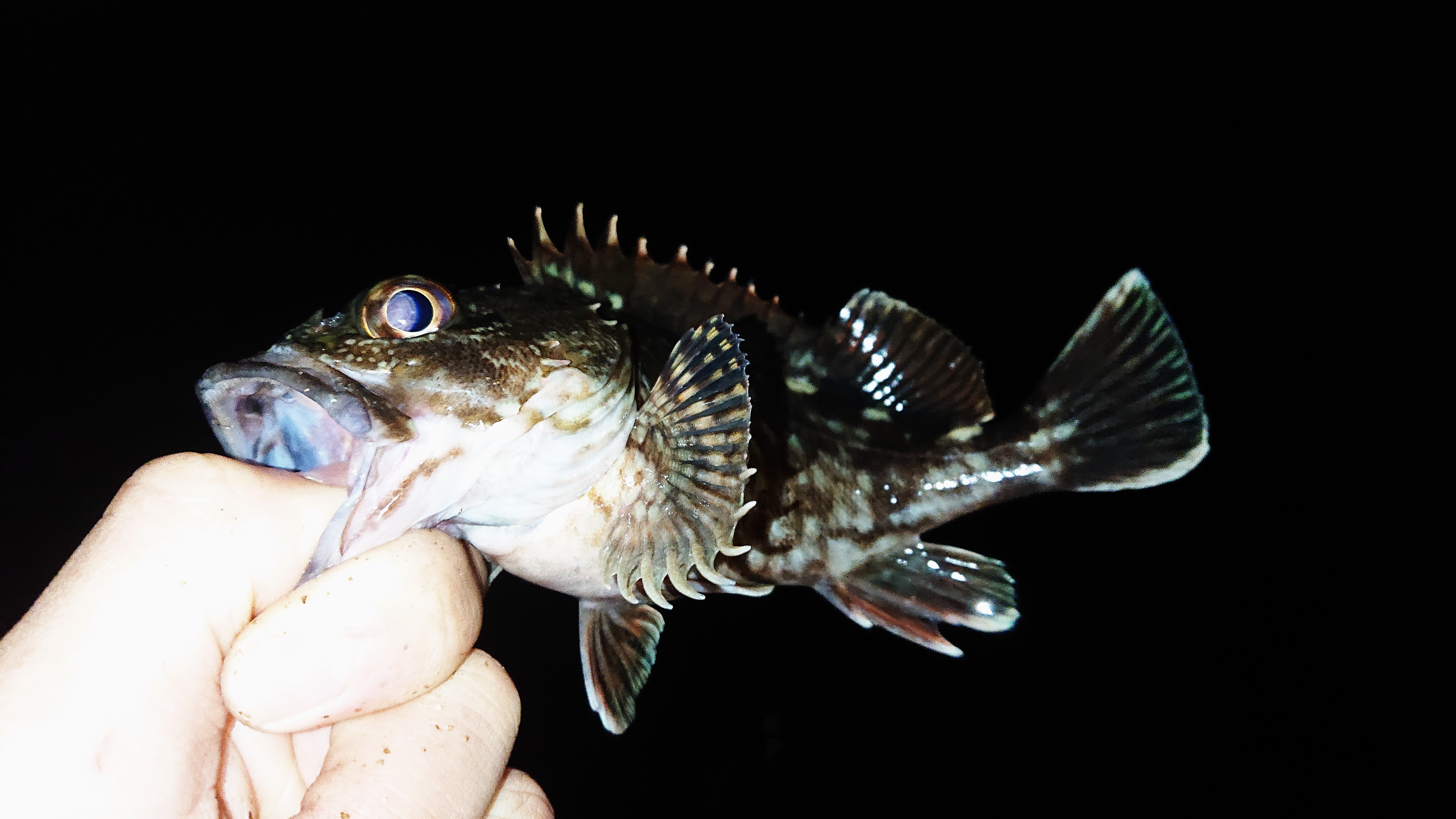 寒い時季に釣れる根魚!日中はブラクリでテトラポッドを狙うと釣りやすいかもしれません。では、夜は?胴付き仕掛けがいいかもしれません!ということで、胴付き仕掛けをもって根魚を狙いに行って来ました!エサはアオイソメ(中)をもっていきました。根魚は、日中は岩影などの障害物の影に張り付いたり、少し水深のある場所でじっとしていることが多い魚ですが、夜になるとエサを求めて岩影の外にでてきていることが多いようです。ということは、ブラクリを投げるよりも胴付き仕掛けを投げてズリズリと底を引いてくると効率的に魚を釣っていくことができる!と考えました。(手前にテトラポッドがあると難易度があがるので、ブラクリがいいかと思います。)霞埠頭や四日市港や三重県の北側の漁港では、堤防の基礎として手前4メートルくらいまでに少し石があるので、その周りに根魚が着いてる様子。なので、とりあえず10メートルくらいなげてズリズリ底を引いてきます。途中からゴツゴツと固いものに当たり始めたら、少し止めると……。アタリが!早速ヒット!やっぱりカサゴいました。同じようにやっていって、30分くらいで数匹!魚はいるようです。夜の堤防釣りに是非胴付き仕掛けはいかがでしょうか?夜は危険なので、ヘッドライトやテトラポッドを歩く際は、スパイクシューズ等はくようにしましょう。