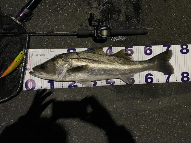 魚が暴れて、針一本で上がって来てヒヤヒヤしながらネットイン♪73cmのシーバスでした♪次のキャストでもバイトありましたが、乗らず終了でした♪上潮、干潮等ドリフトがやりづらいタイミングは、ビッグペンシルでドッグウォークさせると魚から食いに来てくれるので是非試してみてください。