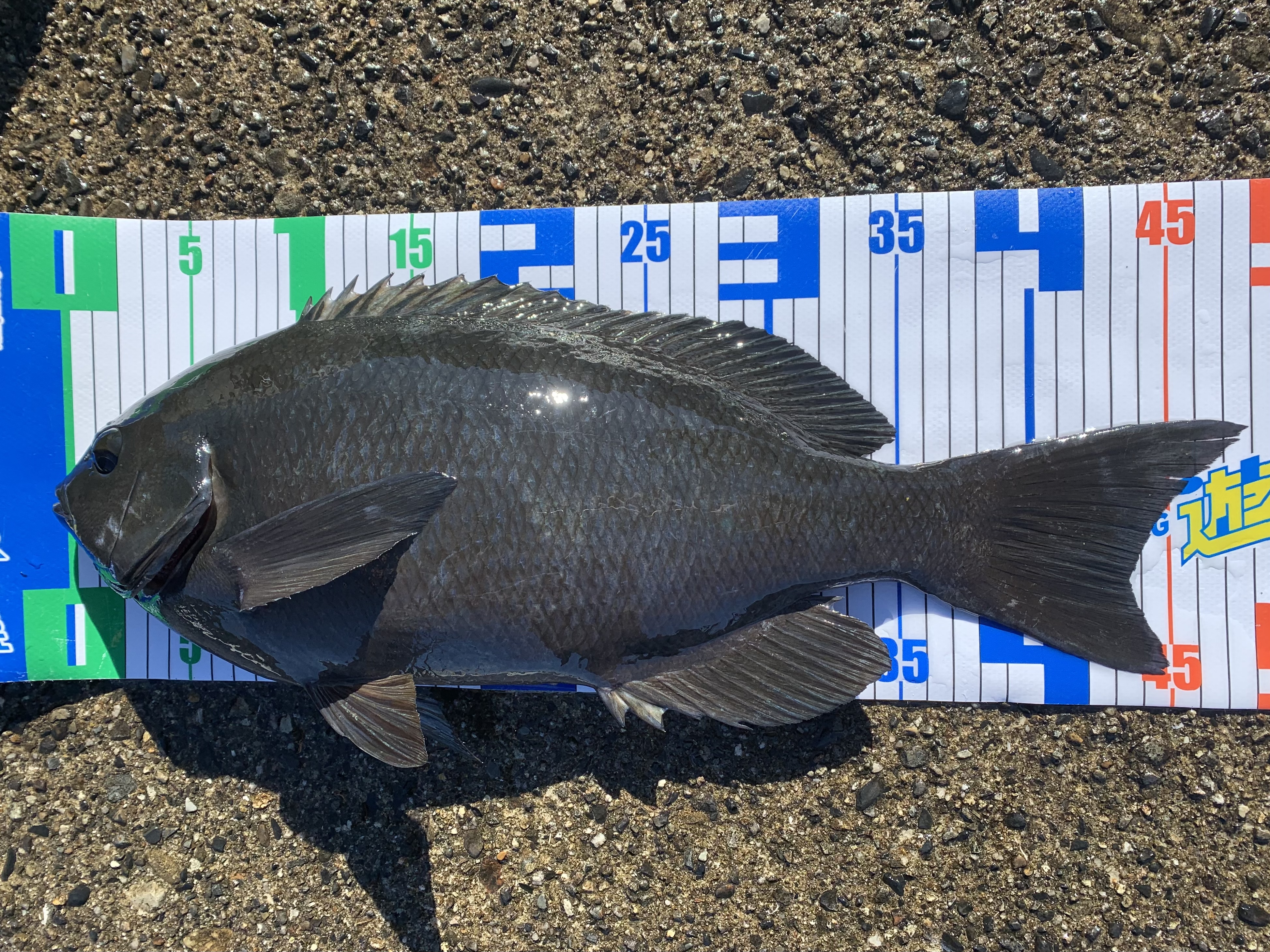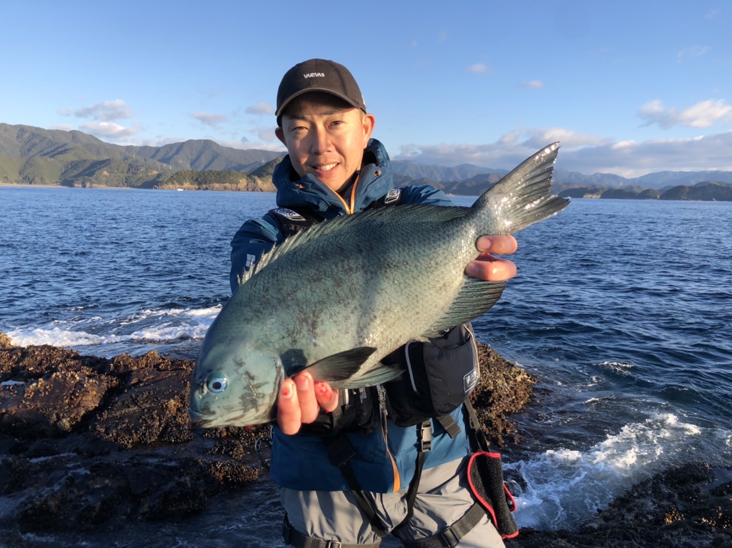 今回は、白浦の世古渡船様にお世話になりグレ釣りに行って来ました。好釣果を期待しましたが、船長に聞くとかなり厳しいとの話。しかし、そこは磯好き、何とかしてやろうと中ノ瀬に渡礁。船着あたりで釣り始めますが潮が緩くエサが取られない。このまま狙ってもと、思い潮が下げているタイミングだったので裏側の低い位置に移動。棚が浅いので、撒き餌を控えめにサシエ合わせているとゆっくりウキが入る。すかさず合すと中々の手応え!がすぐに浮き左の竿一本半ほど張り出した30センチほどの水深がある根の上に。中々の良いサイズと思った瞬間、張り出しの下に走る。瞬間的に糸を緩め、磯が低かったので竿を水中につけ寝かせる。しつこく突っ込むが何とか回避しキャッチ!48cmのナイスサイズでした。その後は、全くの無。納竿としました!寒グレシーズンまだまだ!ぜひ大型狙いに出掛けましょう!