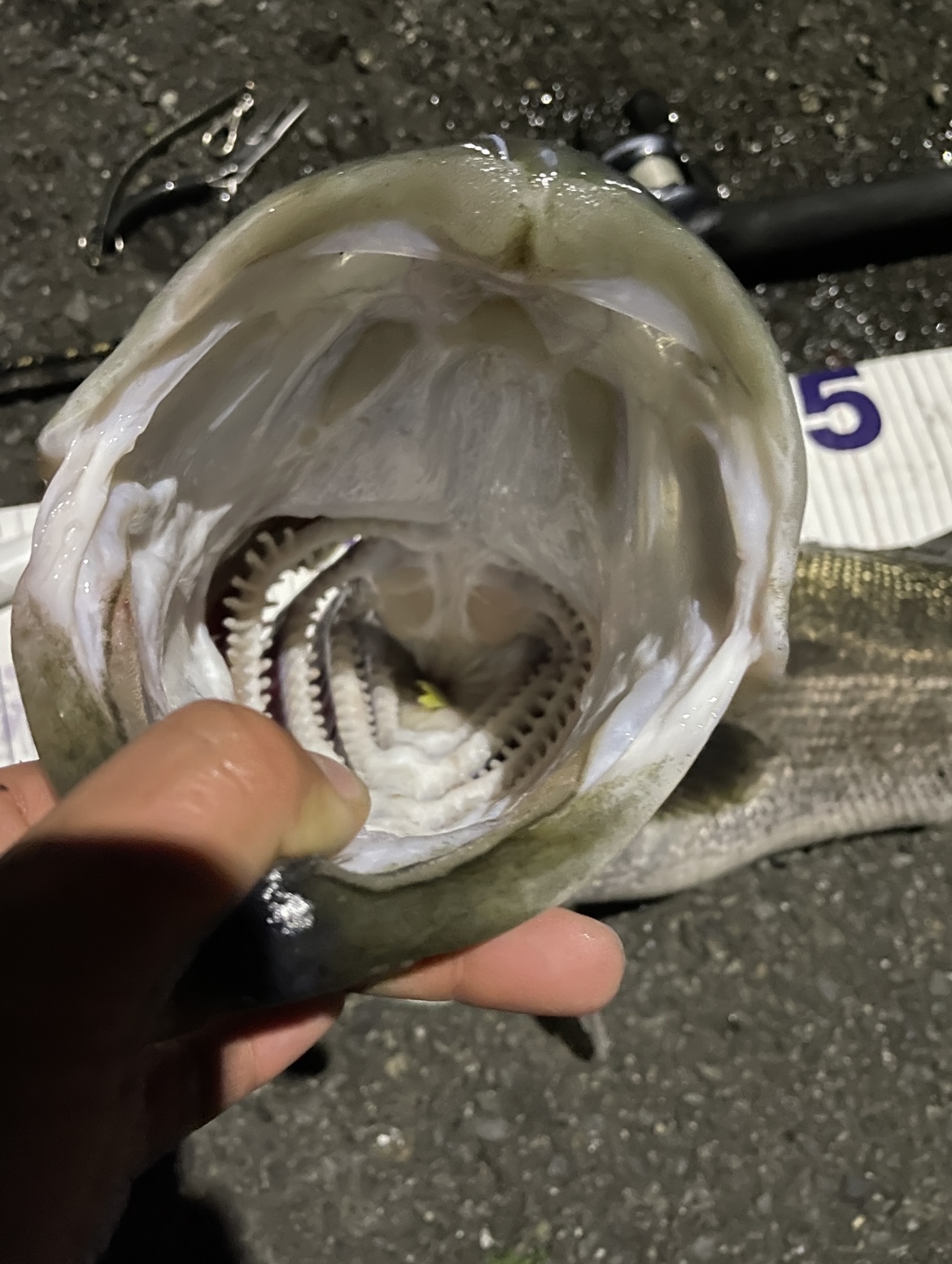 昨日、釣果をあげた時は、マイクロベイトが居たと書きましたが、口の中には、ボラの尻尾が出ていました。