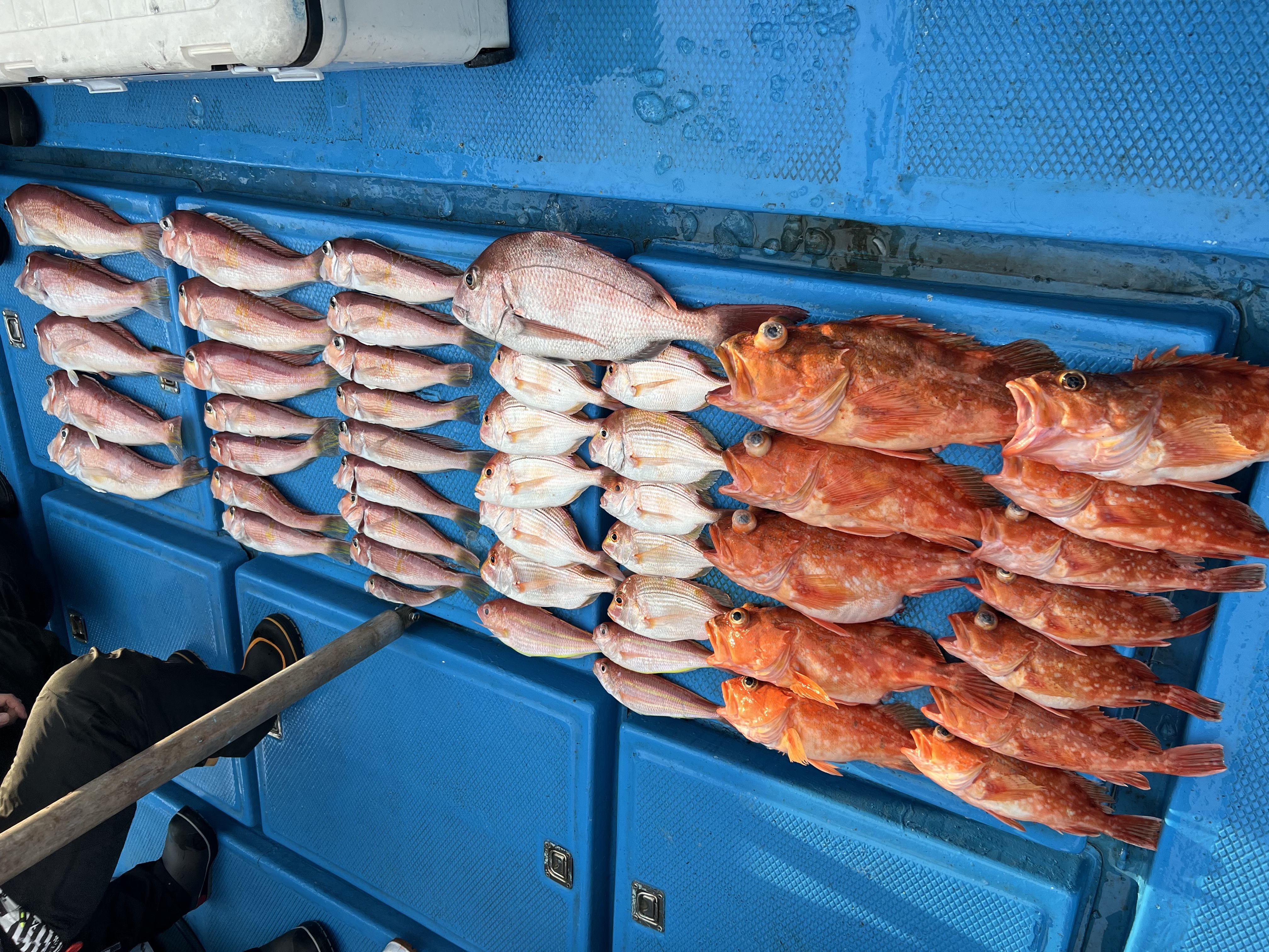 贄浦の海侍丸さんでアマラバチャレンジ!朝一は流れるが昼からは厳しそうとのことで集中!、、、しましたが前半は私の両隣りが甘鯛祭りに。なぜ?船長が見かねなのかネクタイをくれました笑。するとあら不思議つれる✨50センチ近いウッカリカサゴから始まり念願の甘鯛も3匹!おまけのおまけにハンマーヘッドまで!食わせにはやはり海毛虫は必須でした。カラーはアオバチかピンク系(クリアのやつがよかった!)船長も海毛虫絶賛しておりました。少しディープですが甘鯛、真鯛、ウッカリと大漁!高級魚狙うならいまか⁈海毛虫とタングステンのタイラバヘッドお忘れなく!