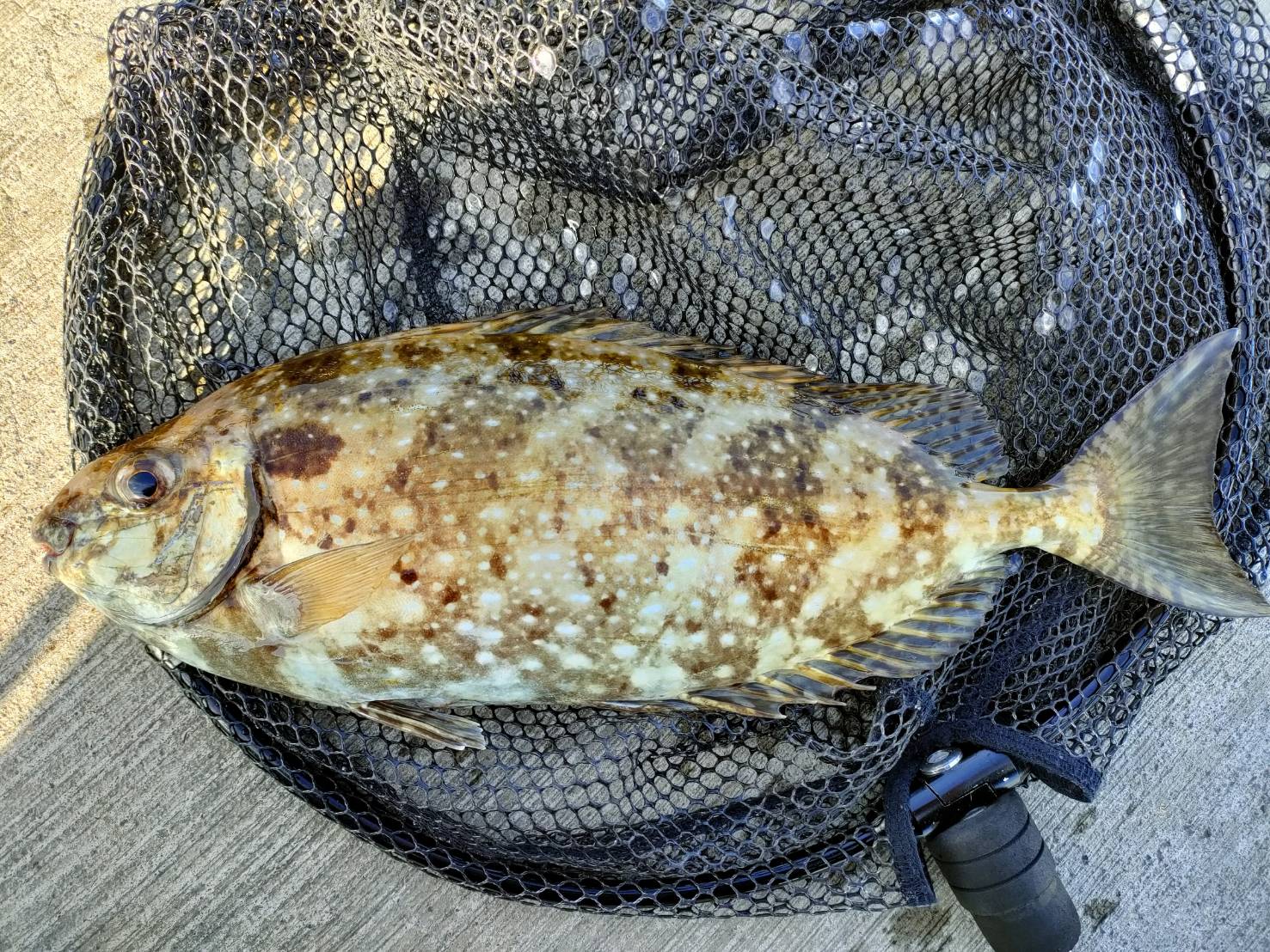 ようやく、アタリがあり今度はしっかり持って行ってから合わせを入れると上がってきたのは、まさかの40cmほどのアイゴ。