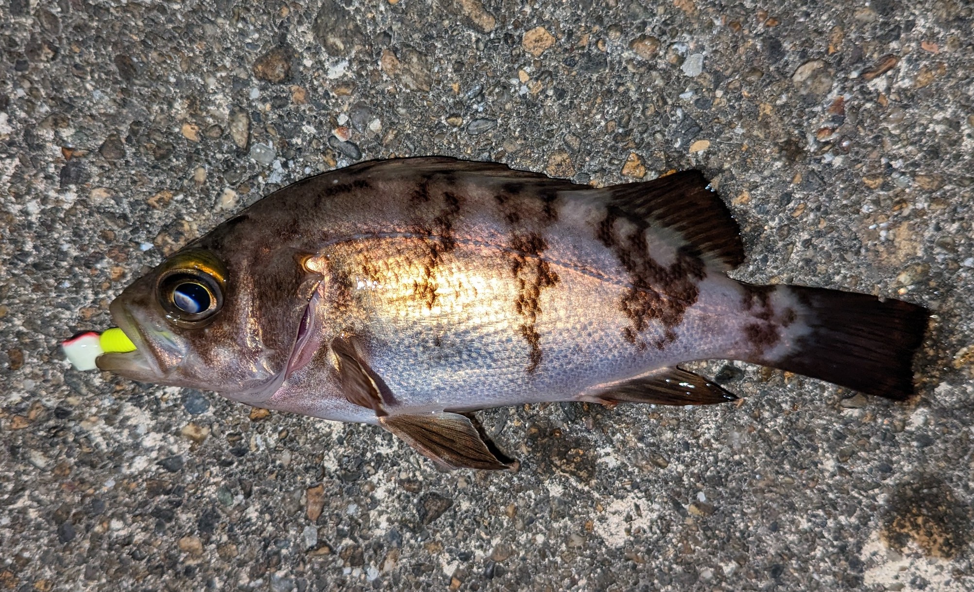 水面は大騒ぎでしたが、全て25センチくらいのボラ。なにかに追われてる気配もなく、しばらくシーバスプラグ投げてましたがメバルスミ1で終了。