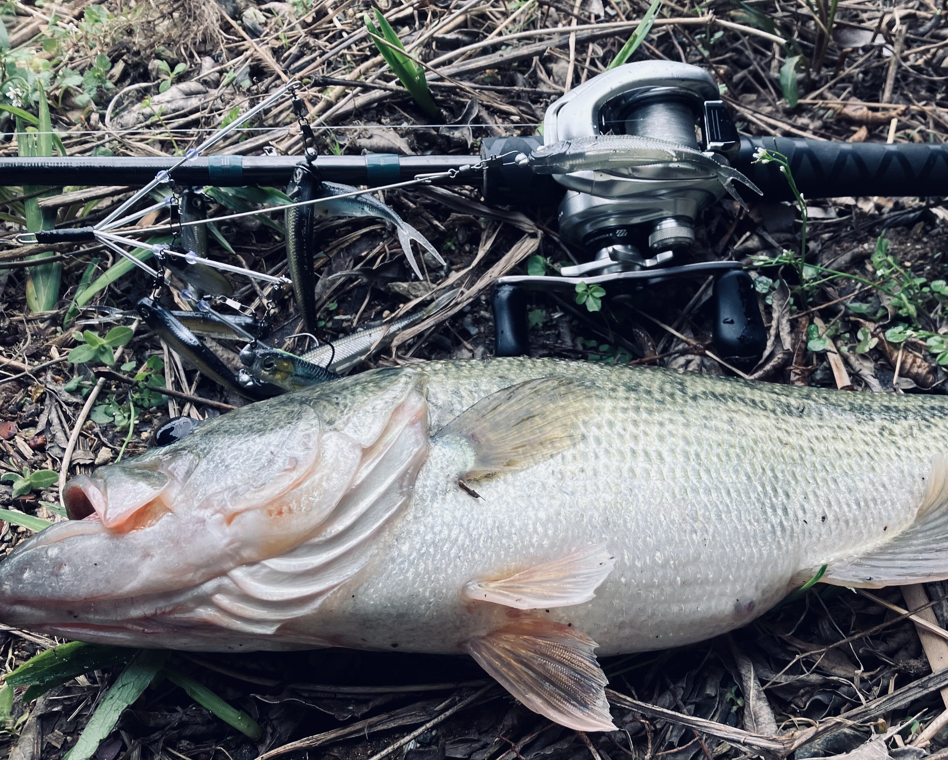 夜な夜な自作したアラバマリグにレイドジャパン/フィッシュローラー3&4inをセットしたバマストから、釣りスタート!!