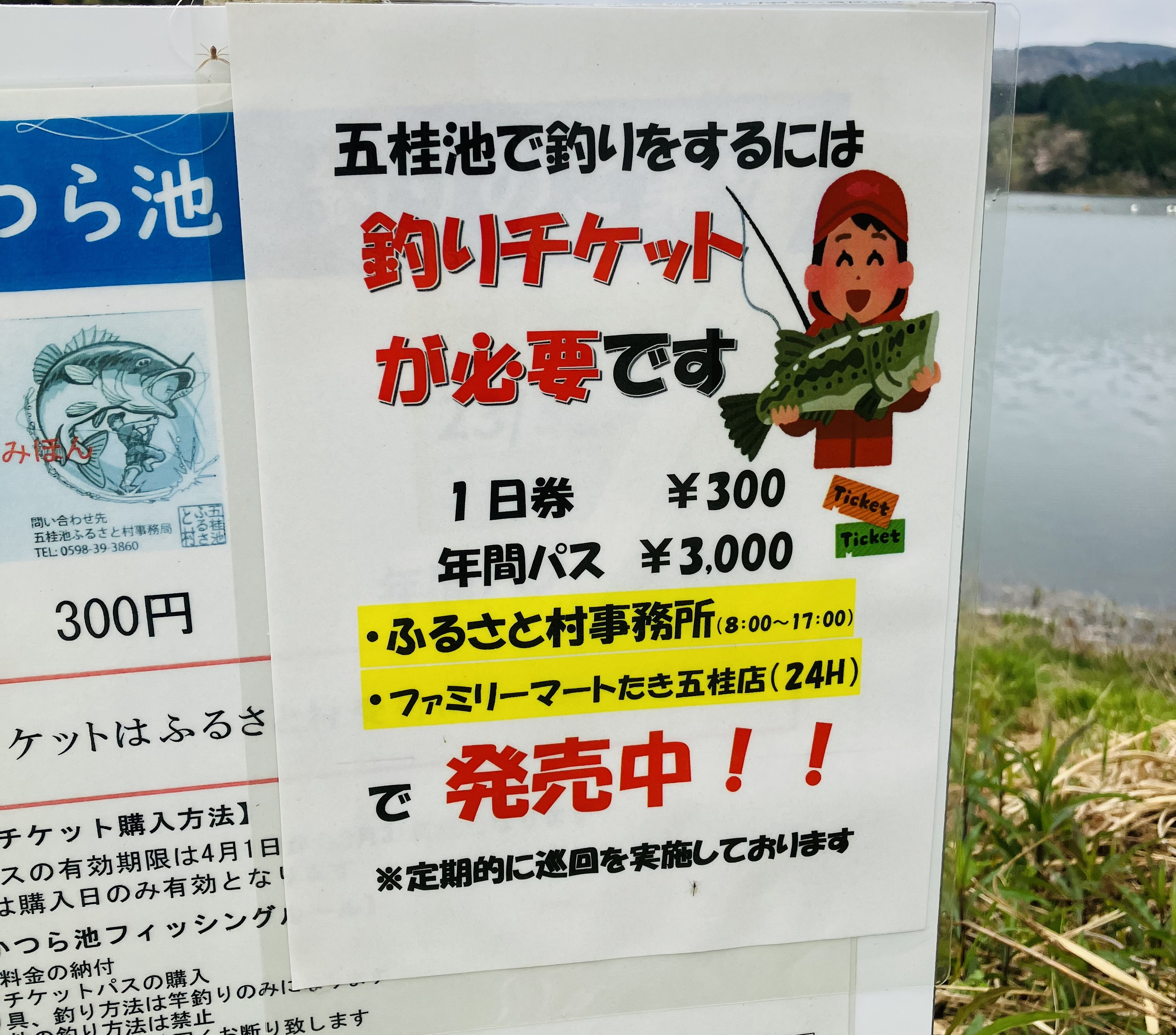 今回は、ファミリーマートたき五桂店で釣券をご購入‼︎五桂池は、釣券の購入で気持ち良く釣りが出来るフィールドです!五桂池ふるさと村総合案内所orファミリーマートたき五桂店で購入できますので、お忘れなく!