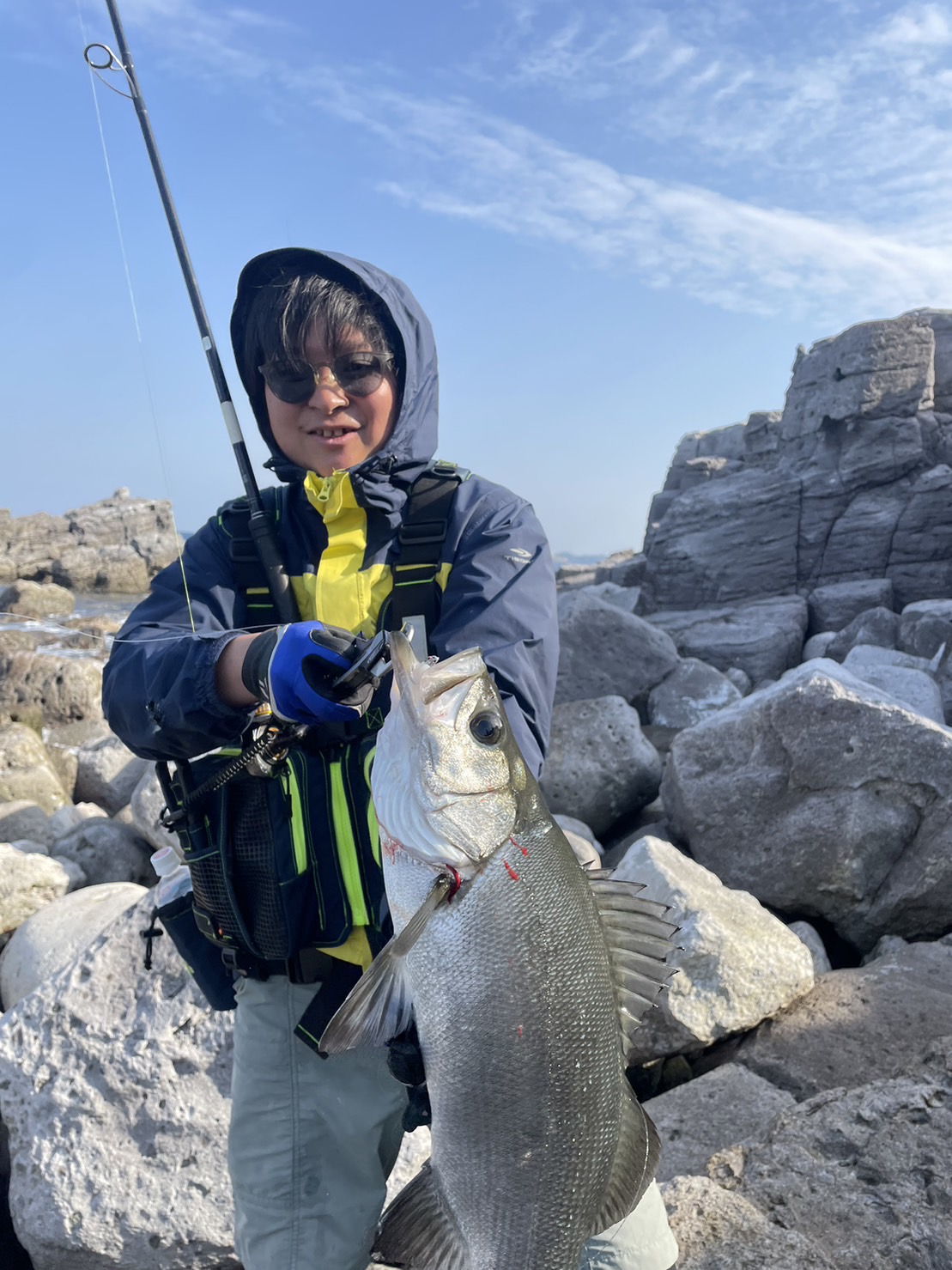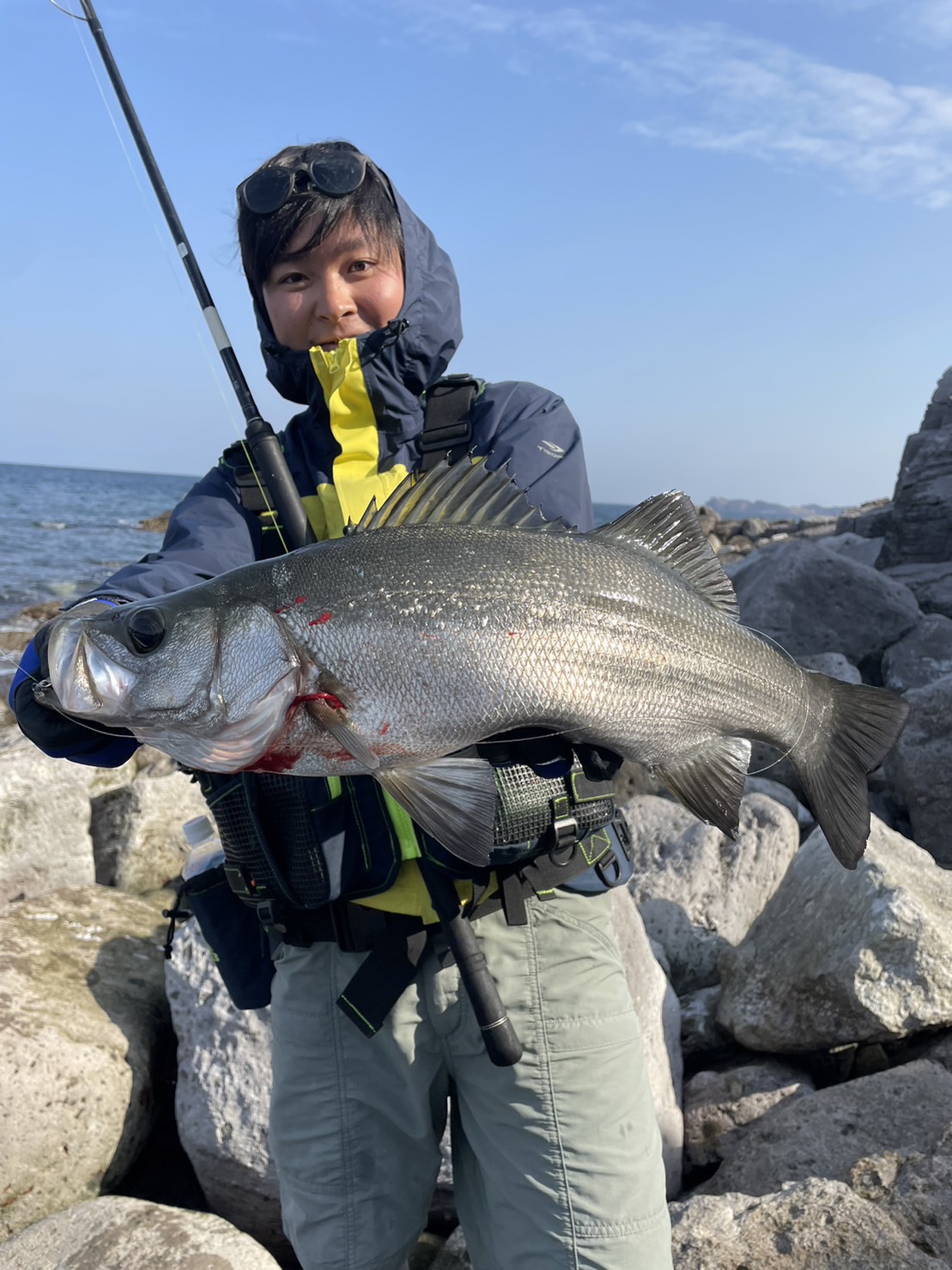 風が一番強い予報だったのでヒラスズキのみ狙いに、手長島という瀬(島?にのせていただきました!