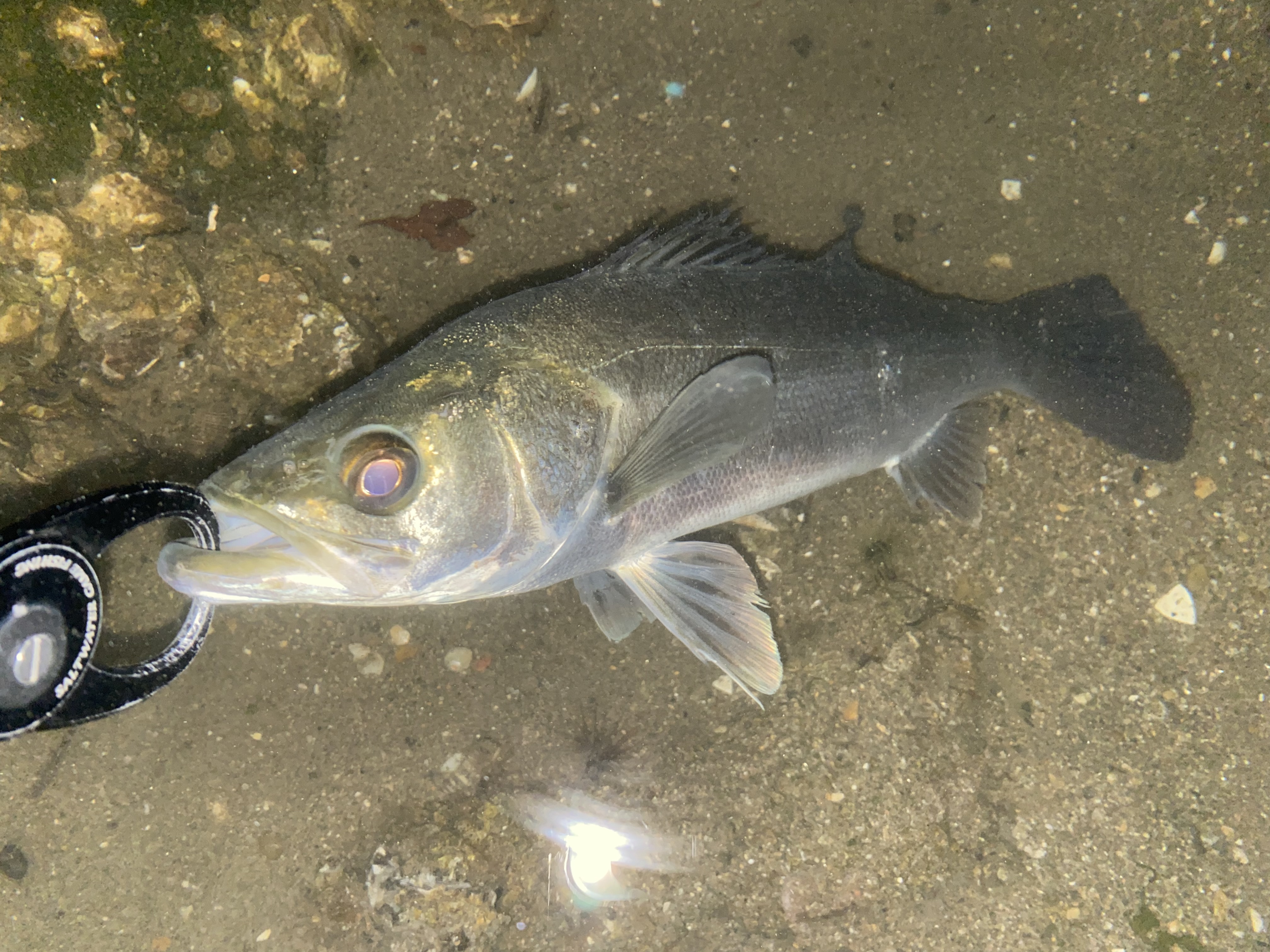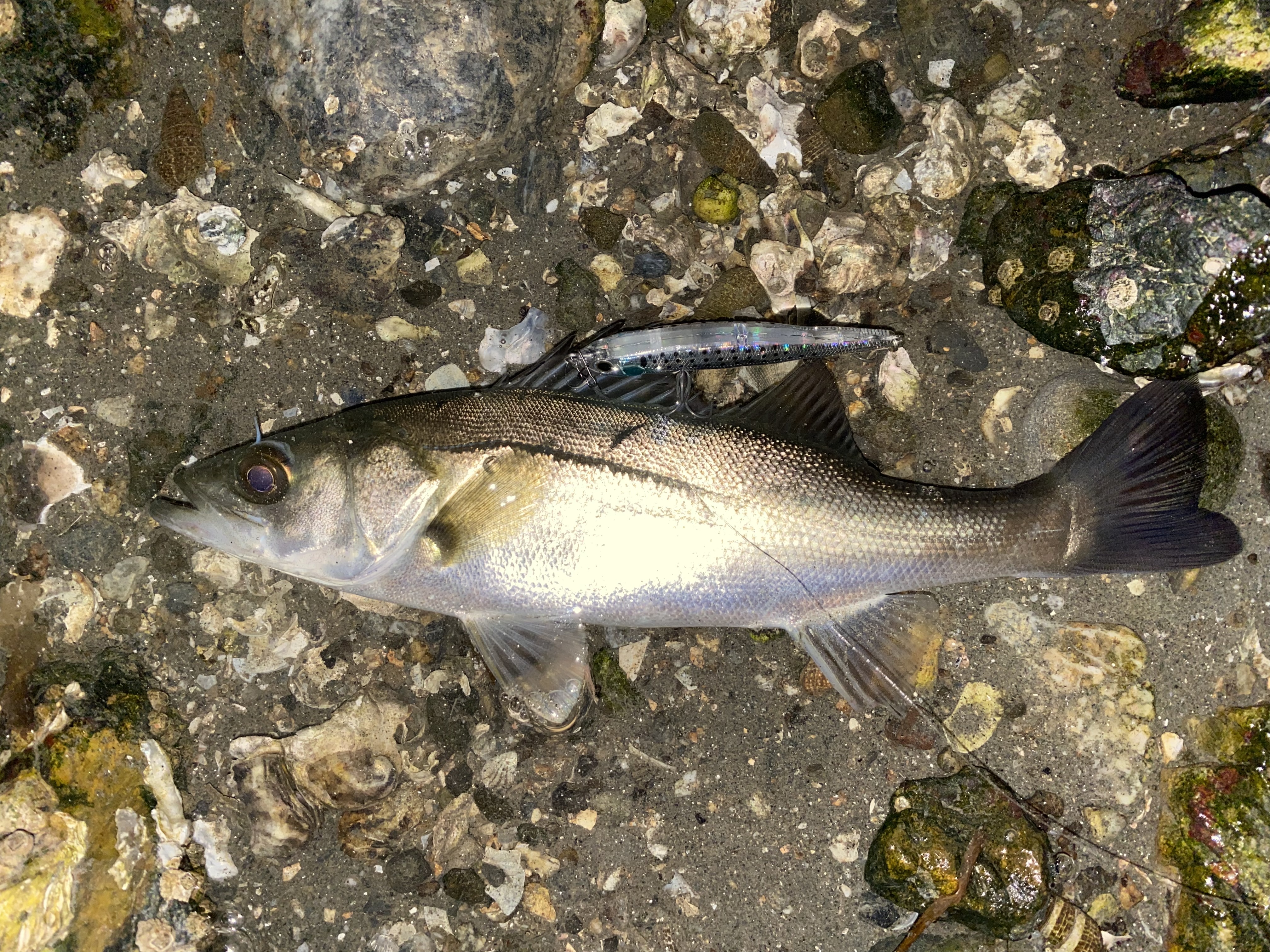 そこから魚の活性が下がり無の時間が続きましたが、24時頃コルセア65でボトム付近をスローで探っていき38㎝のシーバスを1匹キャッチして終了としました。