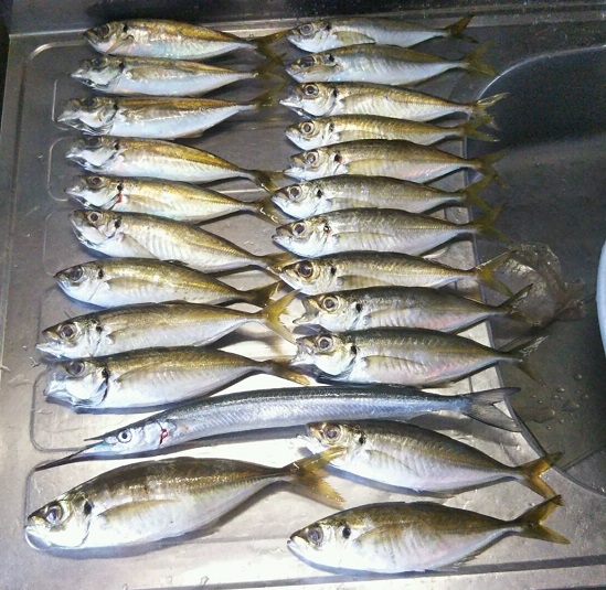 二晩目の後半でのポイント見切りの悪さがかなり影響して釣果が伸びませんでした。二晩目のアジは16+1匹で二晩ともかなり明るい月が出て苦労してます。