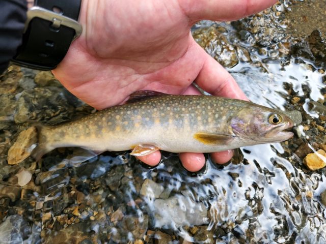 ちょっとした深場ではイワナがルアーに何度も食いついてきて三回目くらいでようやくヒット!この日最大の23センチくらいのイワナ!
