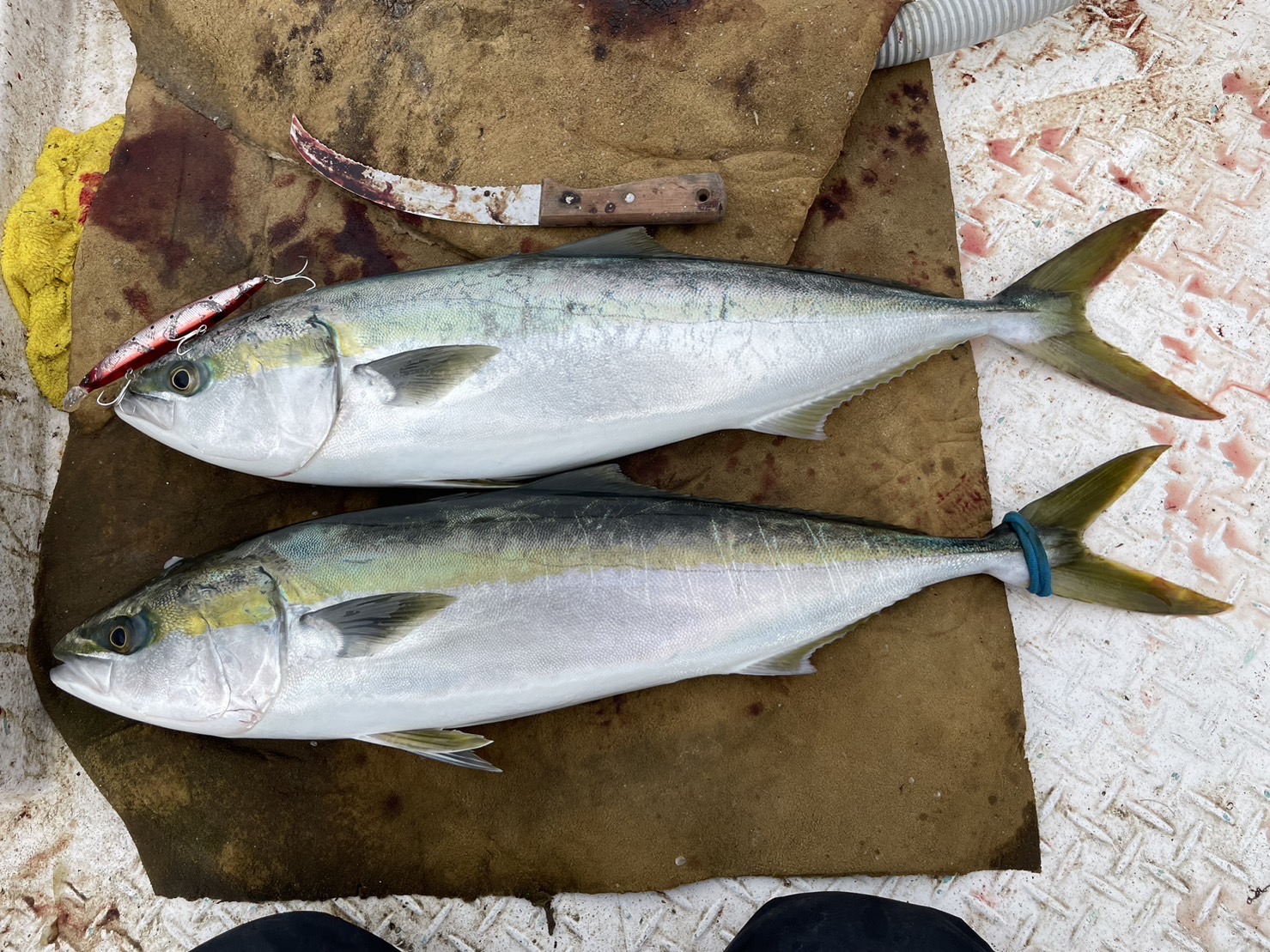 港を出てすぐの所ブラインドで誘っているとなんか喰うた。これワラサやろ。ワラサでした。