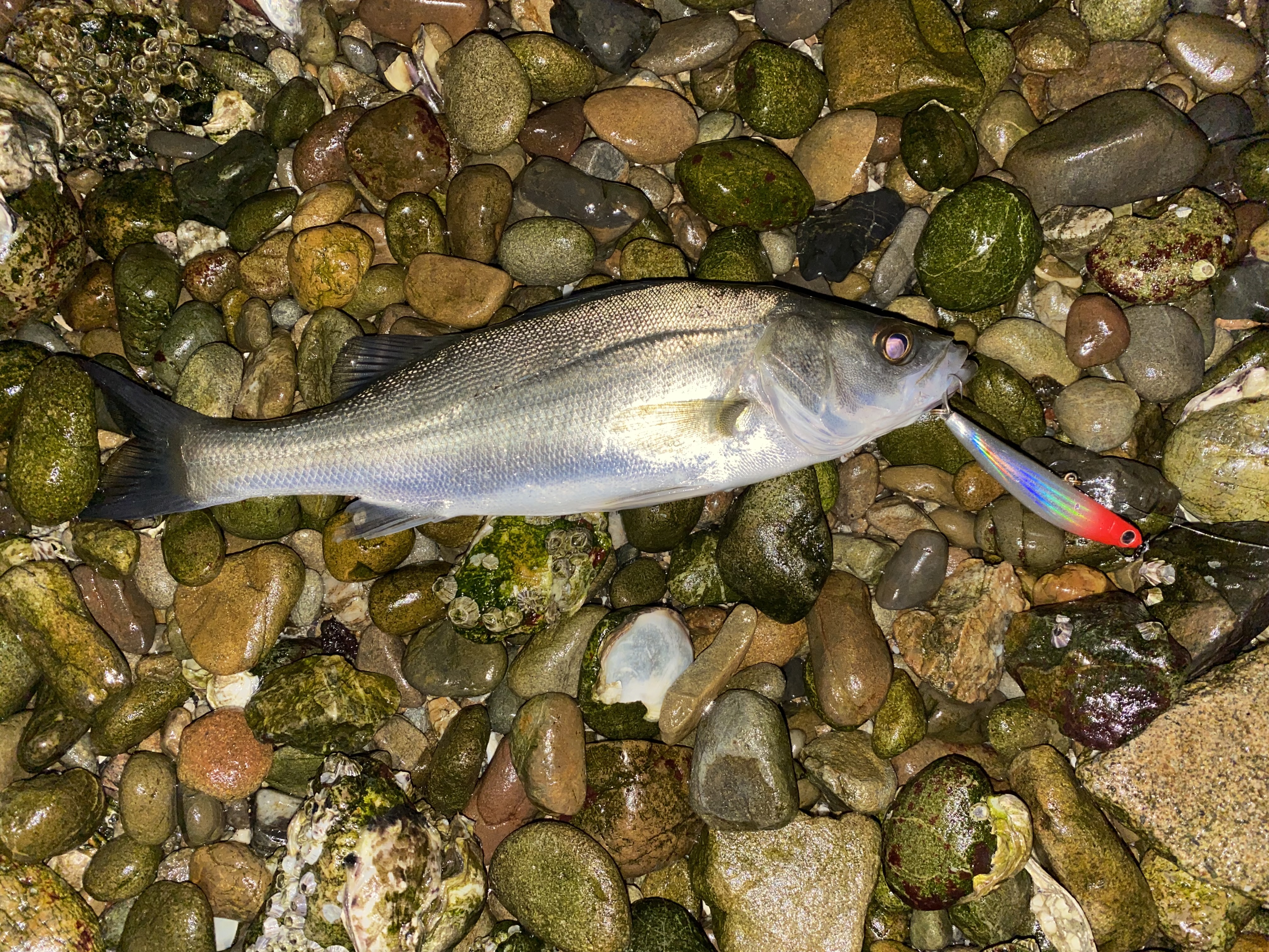 クルクルバチが抜けておりセイゴの小さなボイルがポツポツ起こっていたのでコルセア65を使い、可愛いサイズのセイゴを2匹キャッチ!