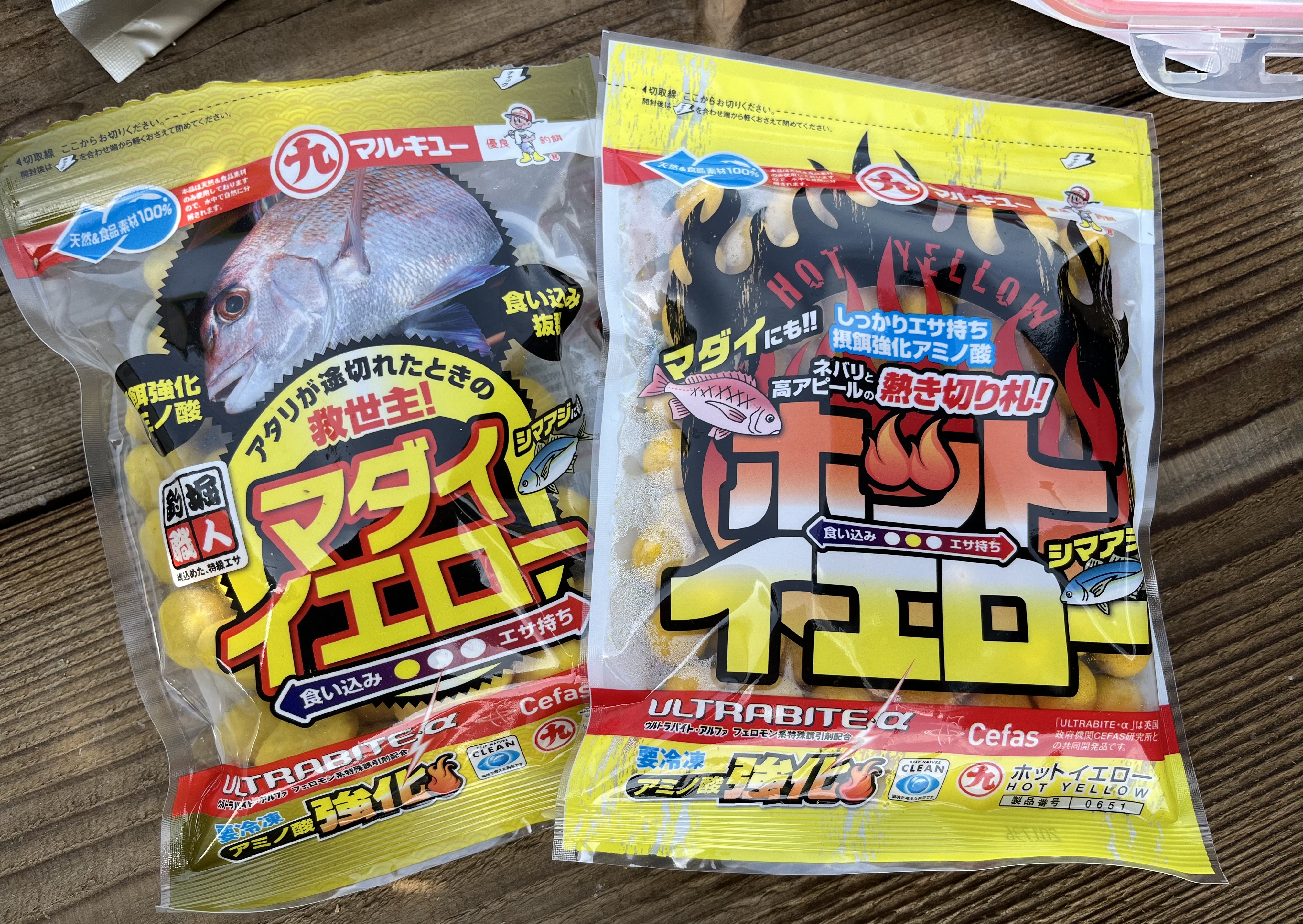 社内メンバーで2マス貸し切り、海上釣り堀餌で話題の練り餌海道proシリーズ、マルキューさんの真鯛イエロー、ホットイエローを使用してきました。