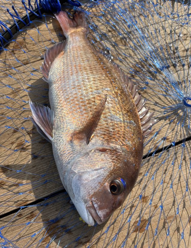 モーニングは渋く少し時間が経った頃タイガーズ愛海老~ 爆釣真鯛でブランド真鯛を釣り、立て続けに2枚ゲット!