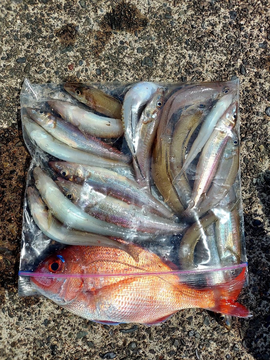 エサはアカイソメとチロリを使用しました。その日によって喰いが良いエサが違うので、両方持って行くのか◎