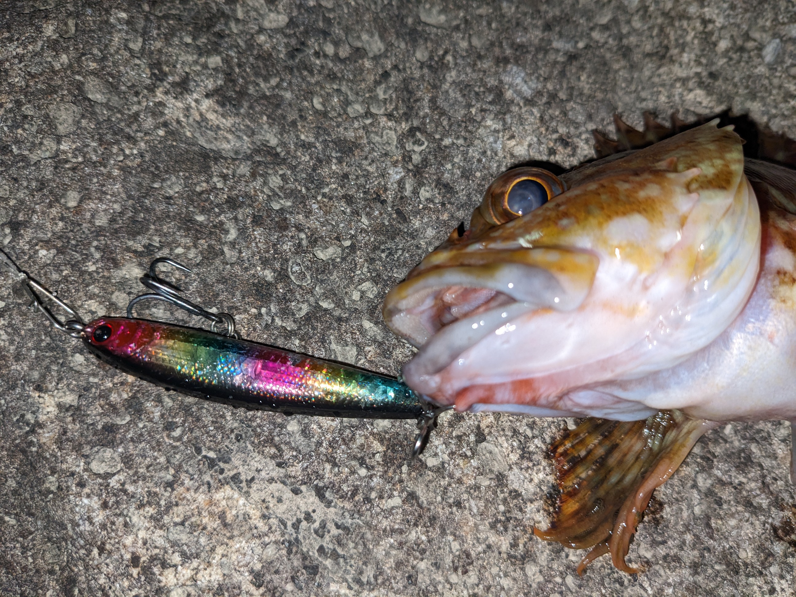 砂のところになにかがあったのかシンペンでガシラをGET。その頃にはルアーサイズは60ミリまで落ちてましたが…