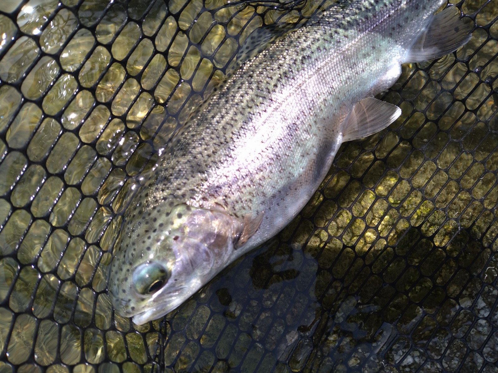 滋賀県高島市にある「フィッシングパーク 高島の泉」さんへ行ってきました。オープンの朝7時から6時間券でスタート。まずは第3ポンドへ。水質はクリア!かなりデカイ「イトウ」も丸見え!!魚は上を見ているみたいで、1.6gからスタートしたもののどんどん軽くして、0.7gで連発!!ただ、すぐにカラーローテーションしないとアタリが続かない…スプーン、クランクなどローテーションも必要です。第1ポンドの水質はクリア、第3ポンドはチョイ濁り。また、「レインボートラウト」「イトウ」「サクラマス」「イワナ」「ロックトラウト」などの色々な魚種も楽しめます!バーベキューやつかみ取り、エサの釣り堀もありファミリーにもオススメです!!