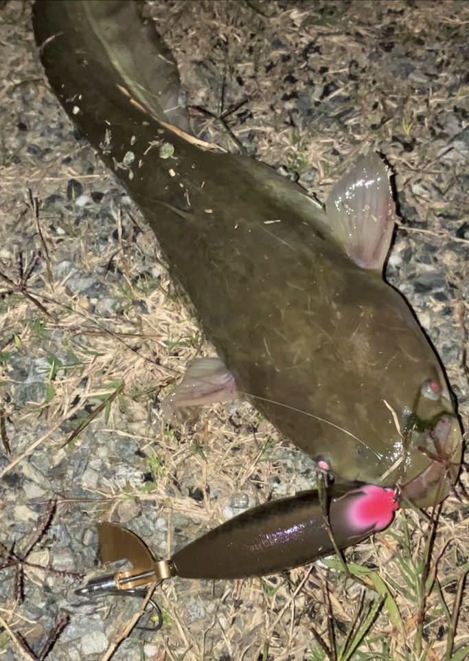 バス用ルアーで、もちろんバスには最高ですが、キュルキュル音がナマズにも最高なはず!
