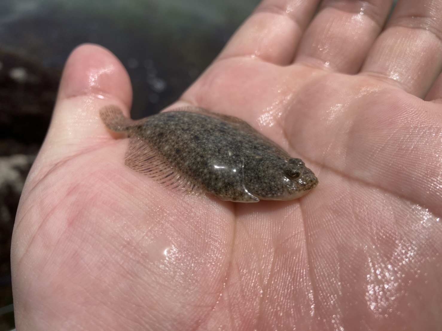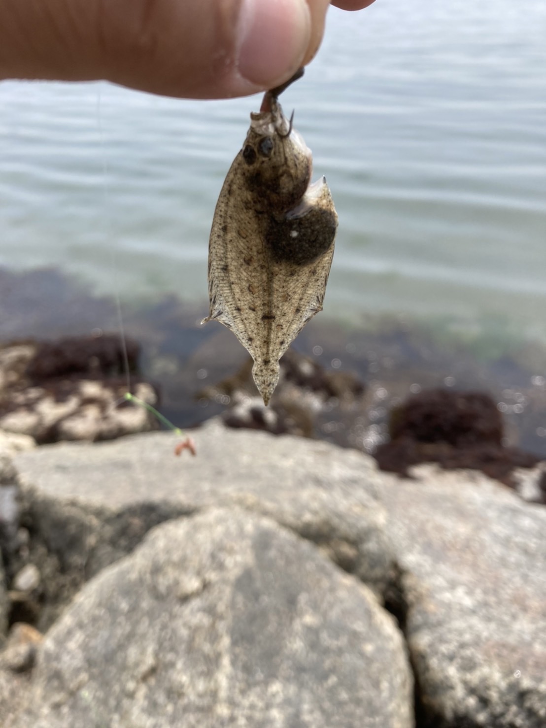 幡豆方面からやってみましたがなかなかアタリがなくポイント移動を繰り返します。3ポイント目でようやく穂先に違和感が!軽くあわせて巻いてみますが付いていたのは可愛い可愛いチビカレイ。結局そのポイントでは同じサイズのおチビちゃんをもう2枚追加しただけで終わりました。