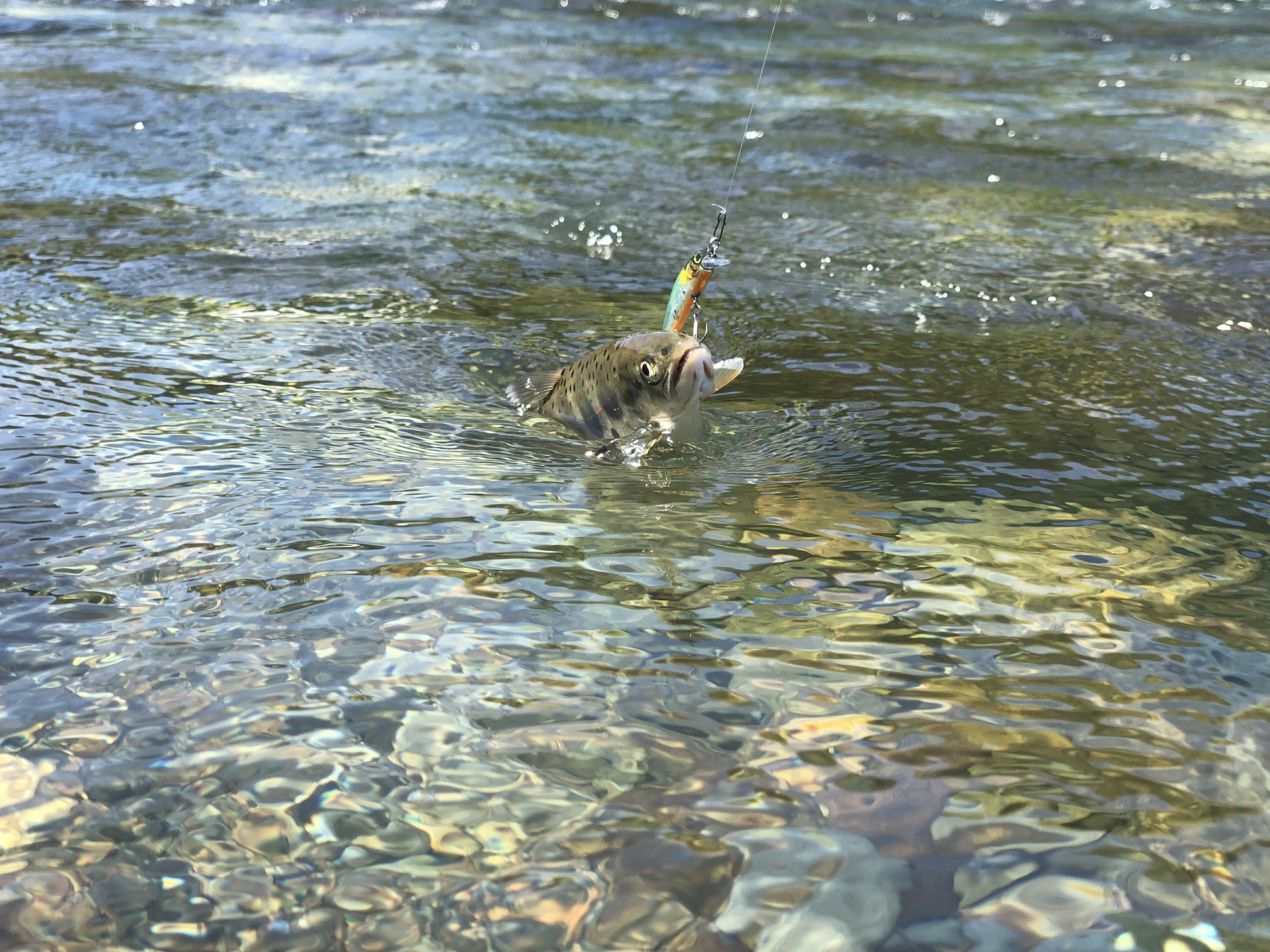 焼津街道店の高柳チーフと長良川のネイティブトラウトに行ってきました。白鳥地区に朝9時に入渓。二人で攻めます。メインルアーはトリコロール流芯43HWのHLフラッシュアユです。いつものように探っていくと、安定して釣れます。魚もキレイで満足(^^)/しかしサイズが納得いかないので、でんでんアマゴを狙いに下流に行きました。しかし大場所は流石に反応無し。攻められた後で反応薄くさっぱりでした。これからいよいよサツキマスシーズンです。また狙いに行ってきます。