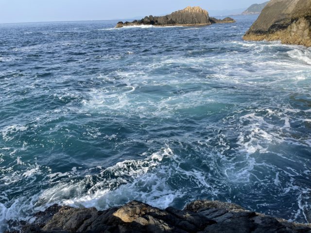 当日は灯台下という磯に上がりましたが海は荒れており波も被りまくりで竿を出す場所は限られる…。