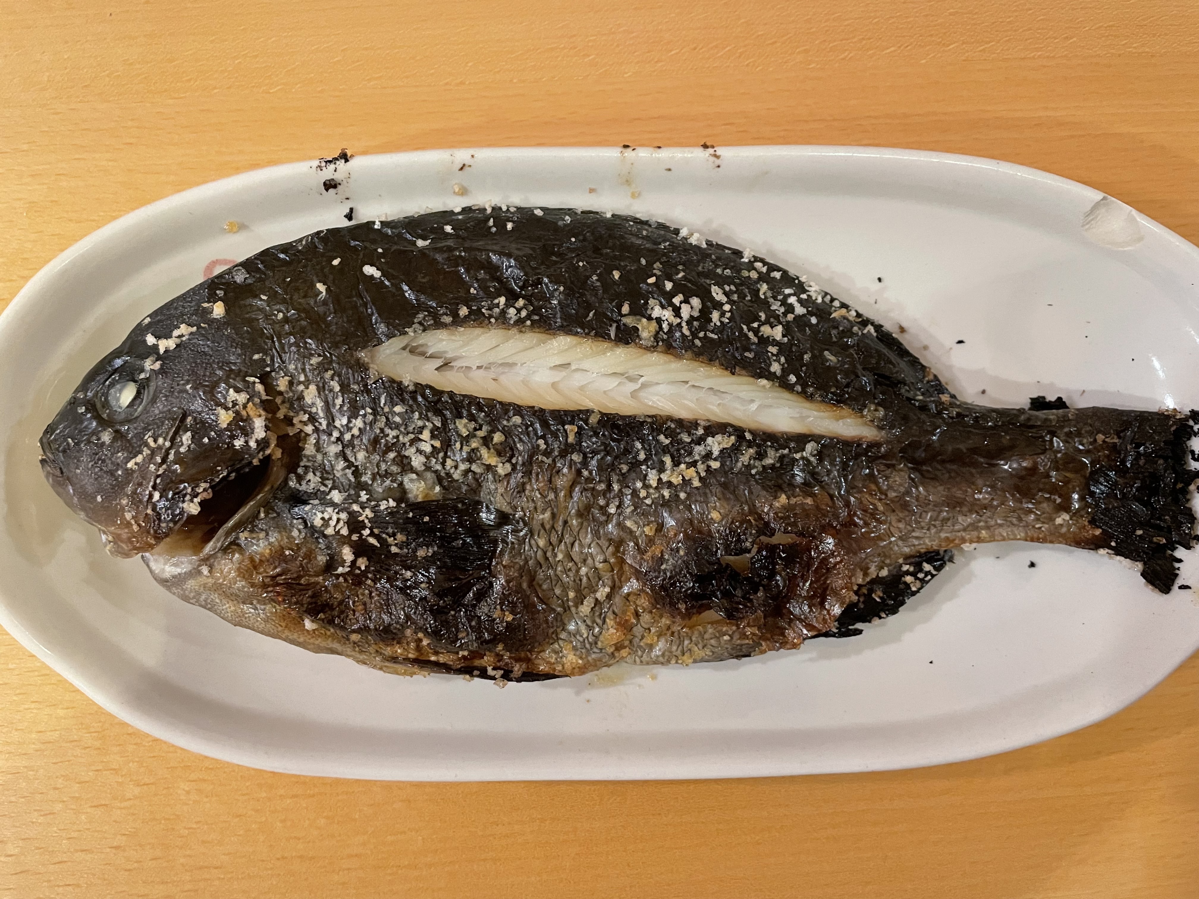 目の前は大きなサラシ。とりあえず沖の潮目まで流してみますがなかなか釣れない。やりにくいですがウキを3Bに変えてガン玉追加しサラシの中で釣りをする事に。するとラインが一気に放出していく気持ちの良いアタリ!サイズは小さいですが久しぶりのグレの引きを堪能!しばらく連発しますが昼前に時合い終了…。14時納竿となりました。