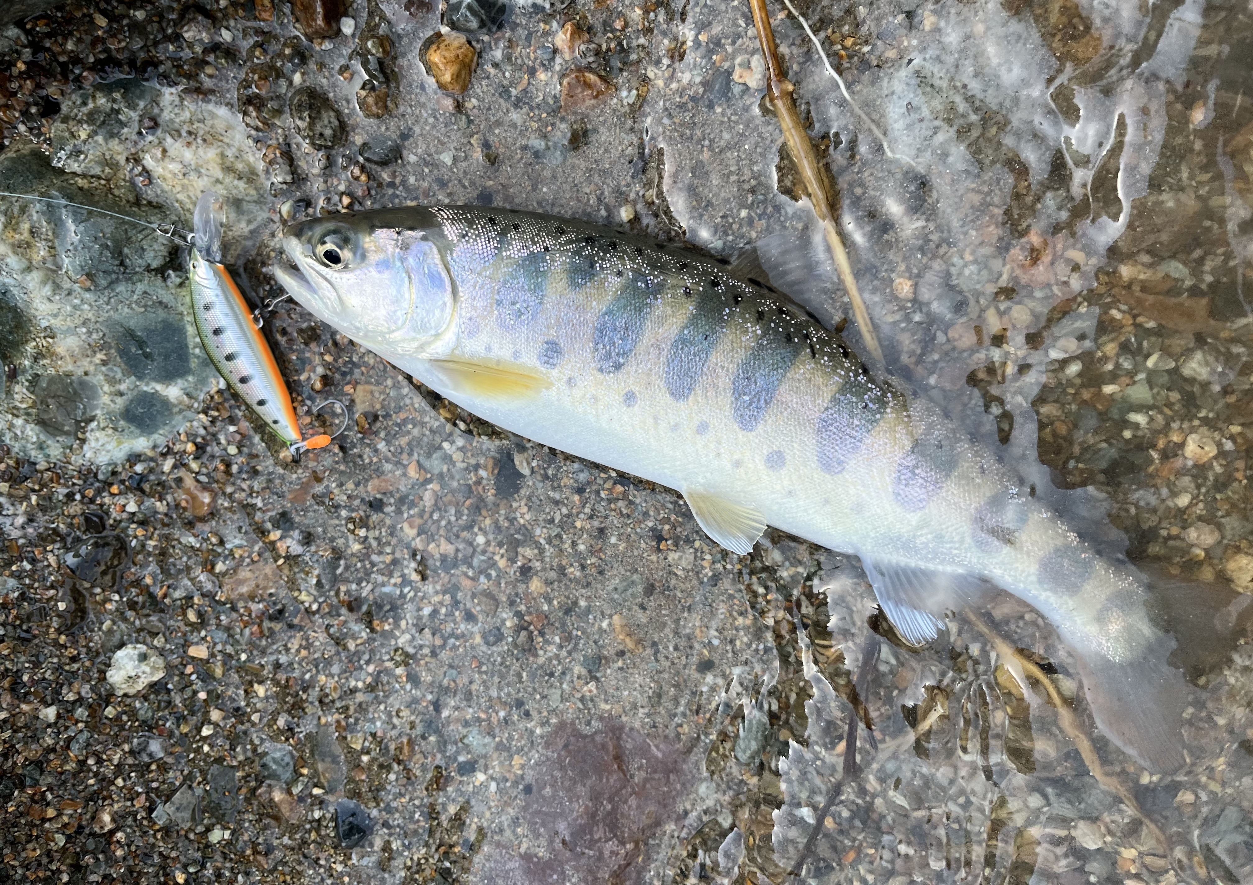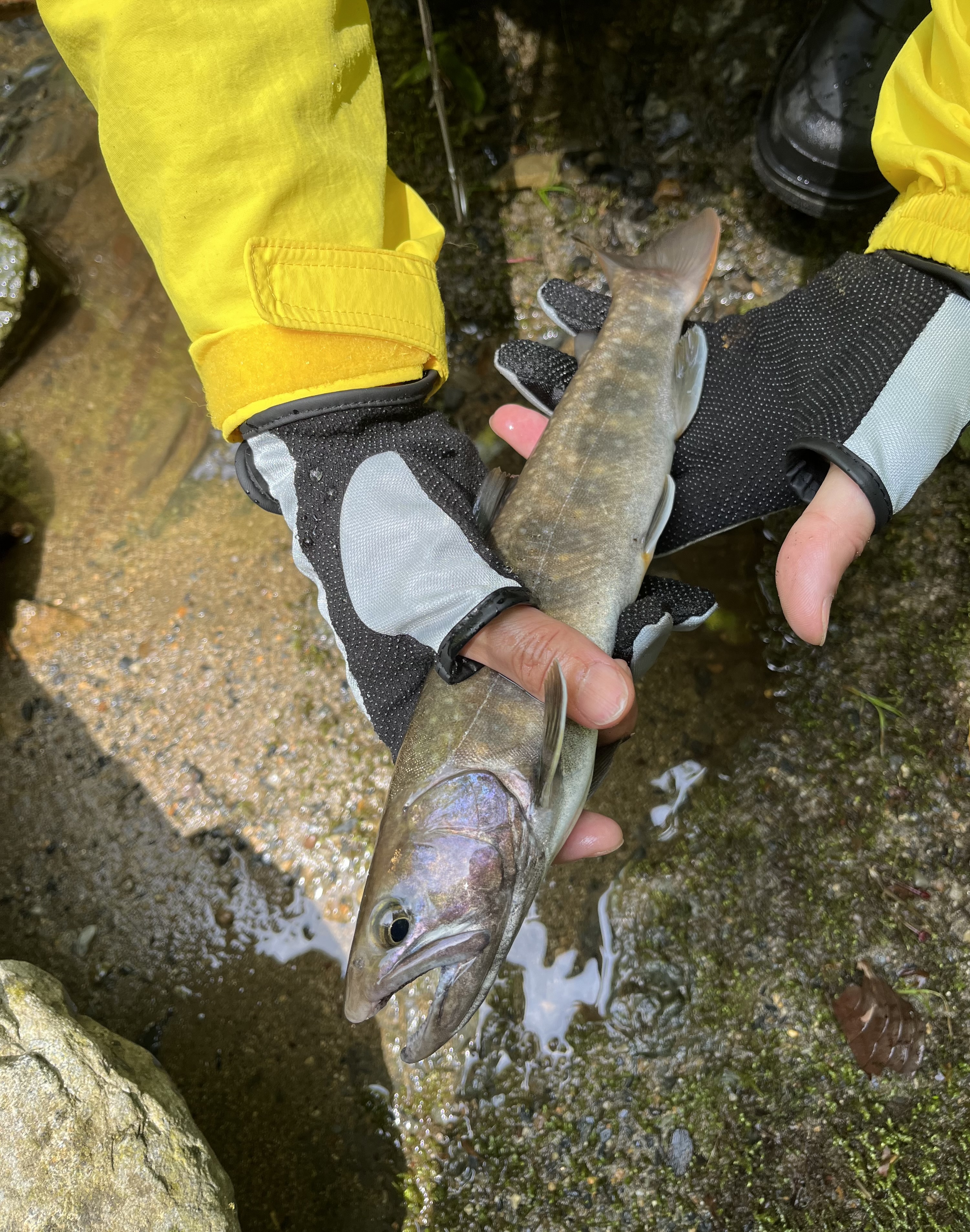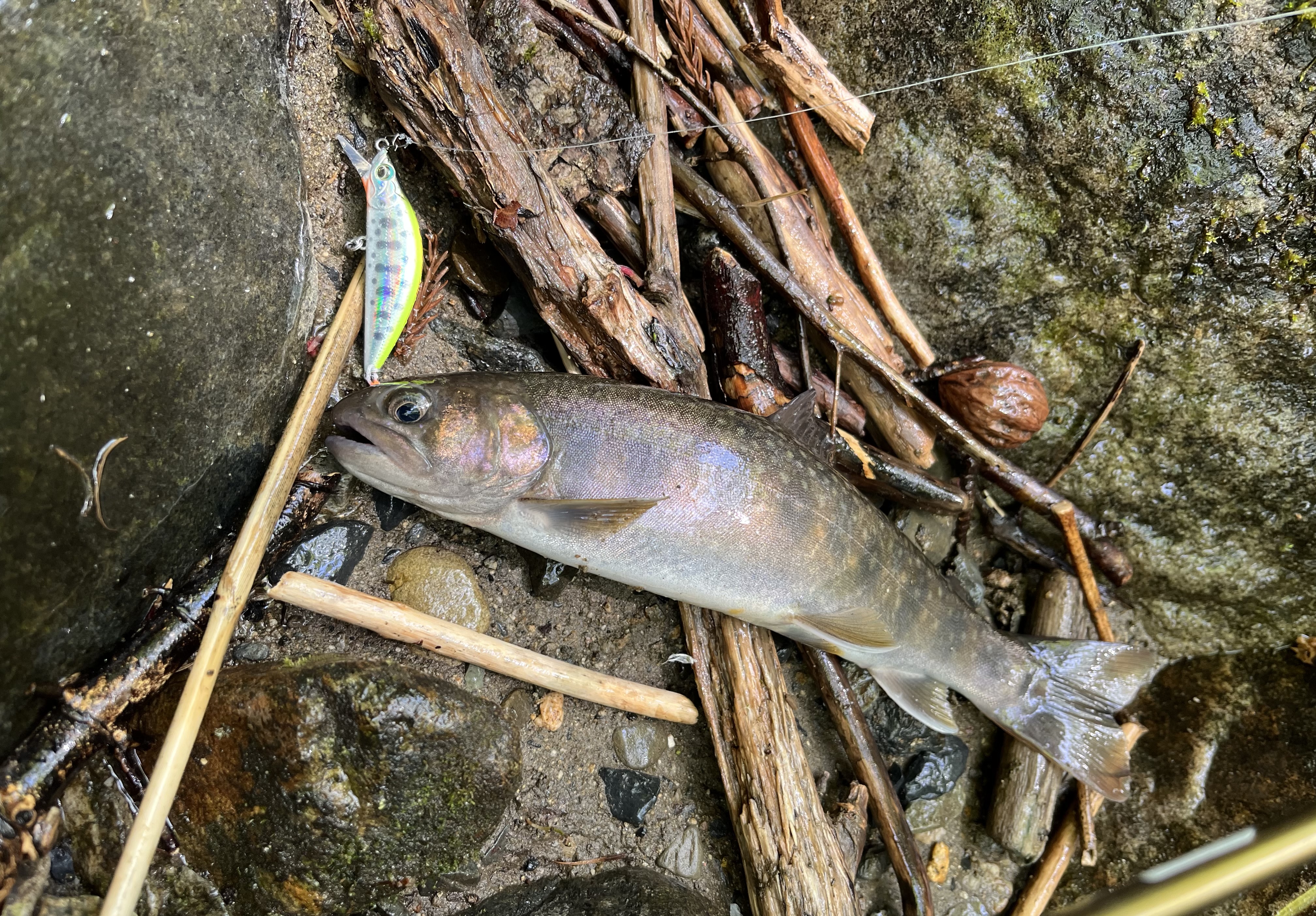 少し水位も高く釣りづらくもヤマメ、ニジマスが釣れました。