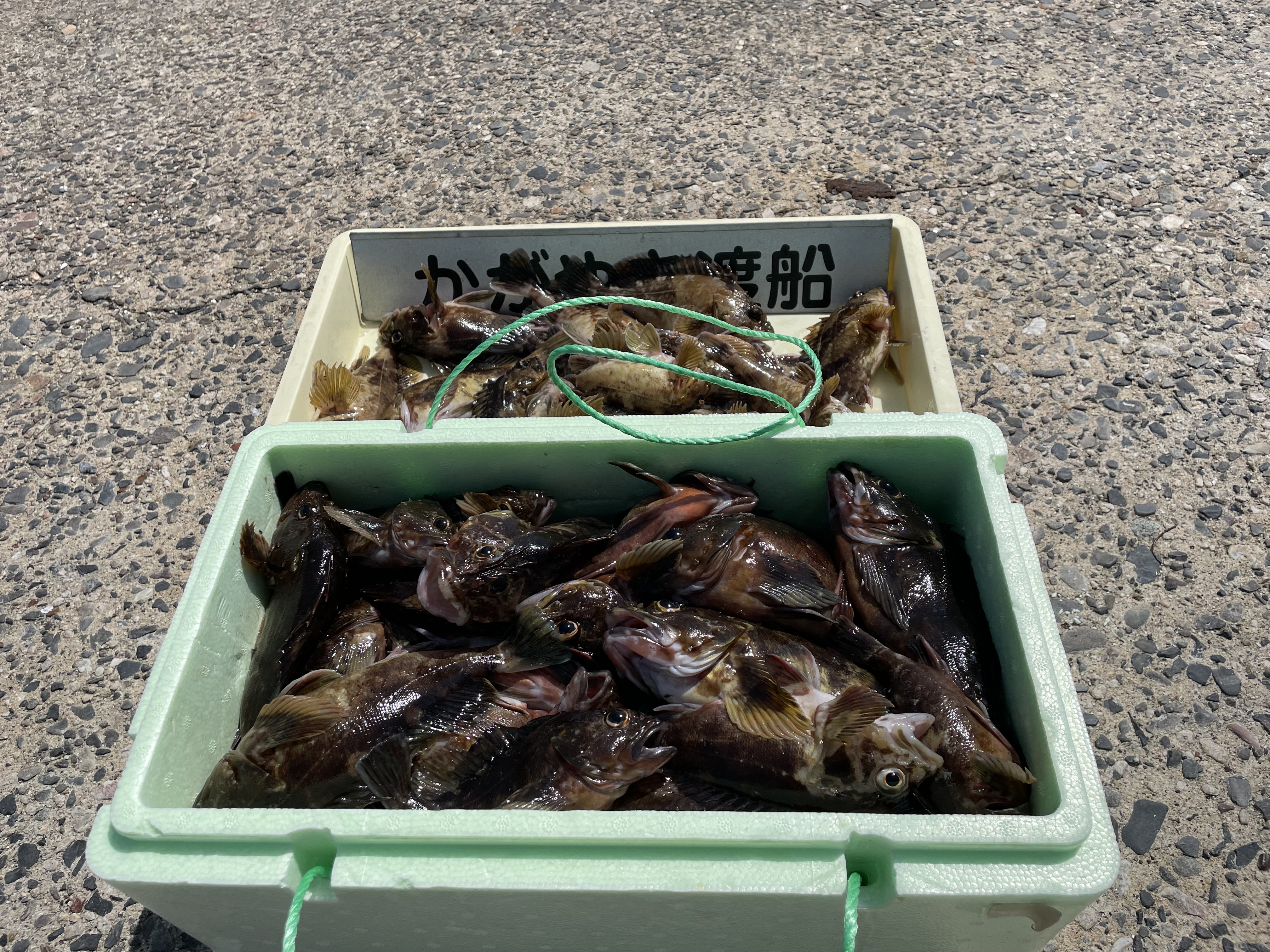 港に帰り沖テトラに渡っていた他のお客さんの釣果を見させて頂くと…すごい!20〜30センチのカサゴが50匹以上!実釣約5時間でブラクリの穴釣り。真昼間にこれは凄い!と同時にここのテトラのポテンシャルに驚かされました。