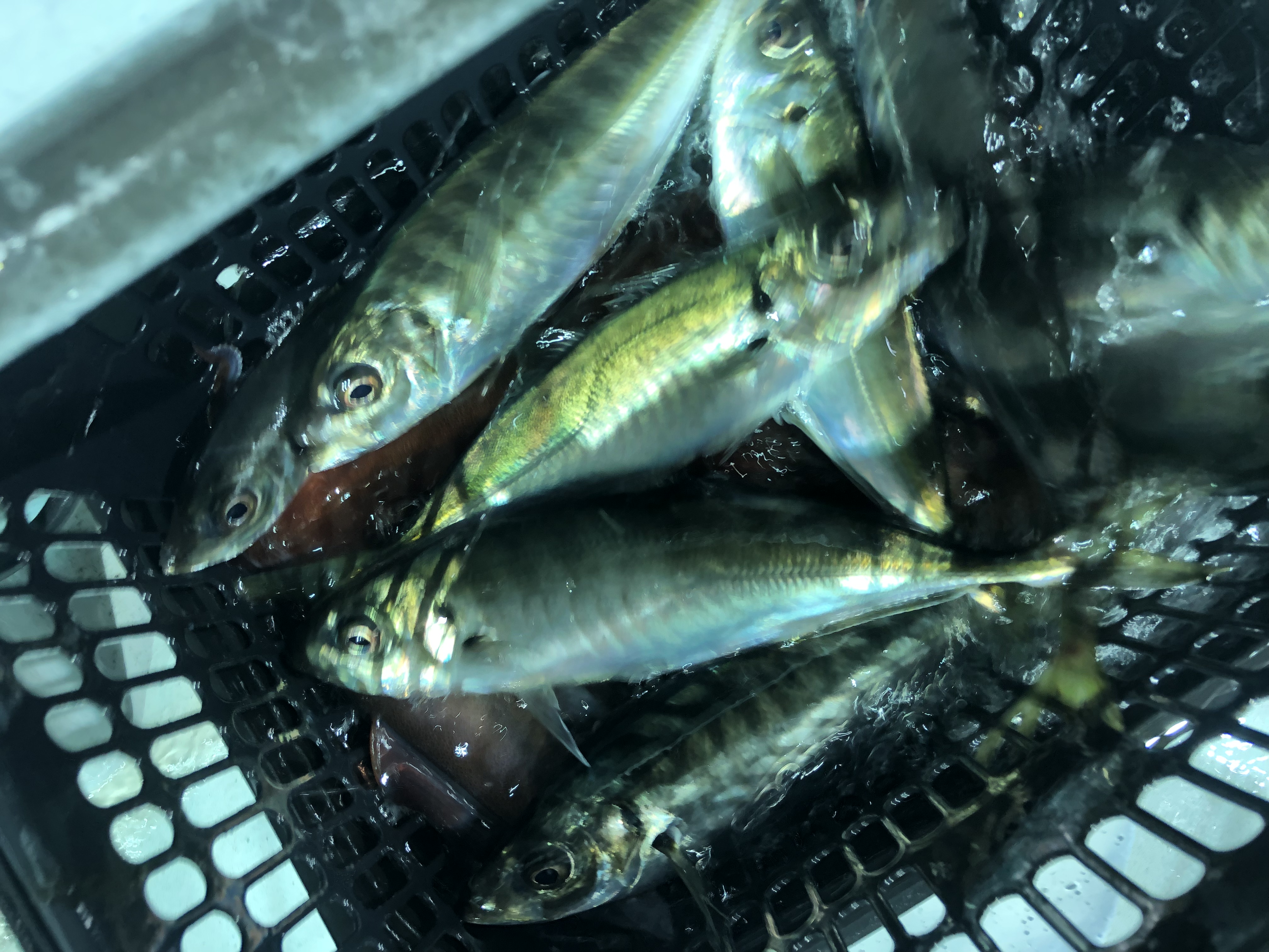 21時半過ぎにアジの反応が!バチコン仕掛けに変えて一投目からヒット!30cm程のアジが入れ食いに!