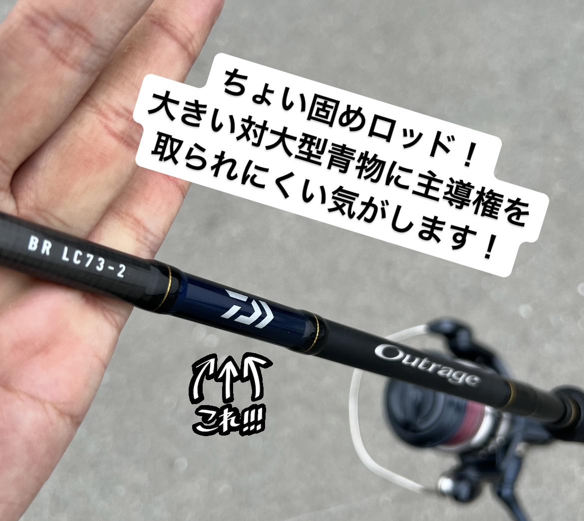 ダイワアウトレイジBRLC73-2は触った感じ結構硬めな印象でした。強風時や沈んだ魚を狙いたいジグやシンキングルアーに使いやすい感じでした。カツオ狙いに良さそう。竿が強い分船縁のダッシュもしっかり抑えて浮かせるパワーロッドでした。大型青物には有利に戦えそうな感じです。乗り合いが多い場合の強引なやりとりには向いていそうです。
