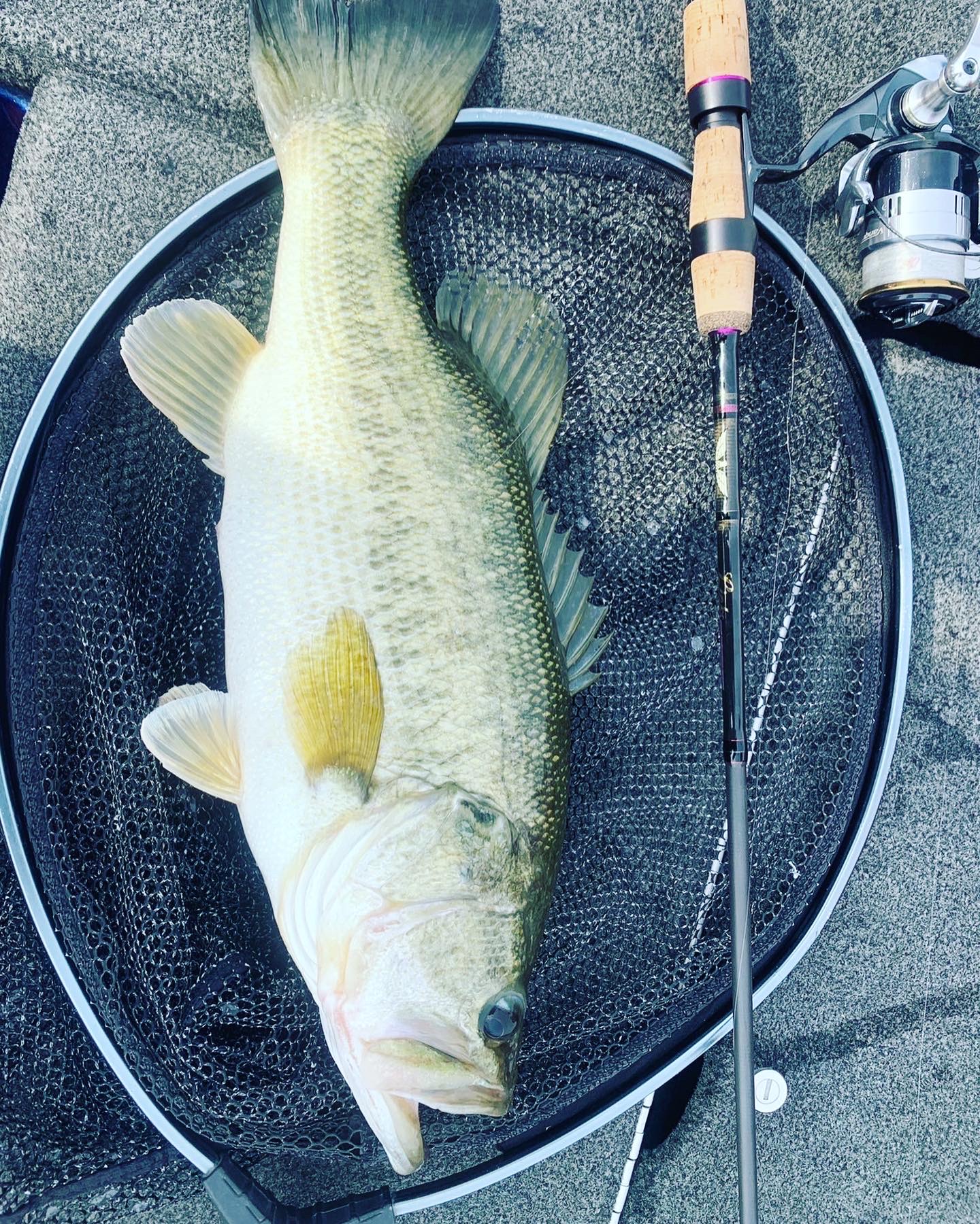 しっかりと合わせる、あがってくると50cmクラスのバスがヒット!!