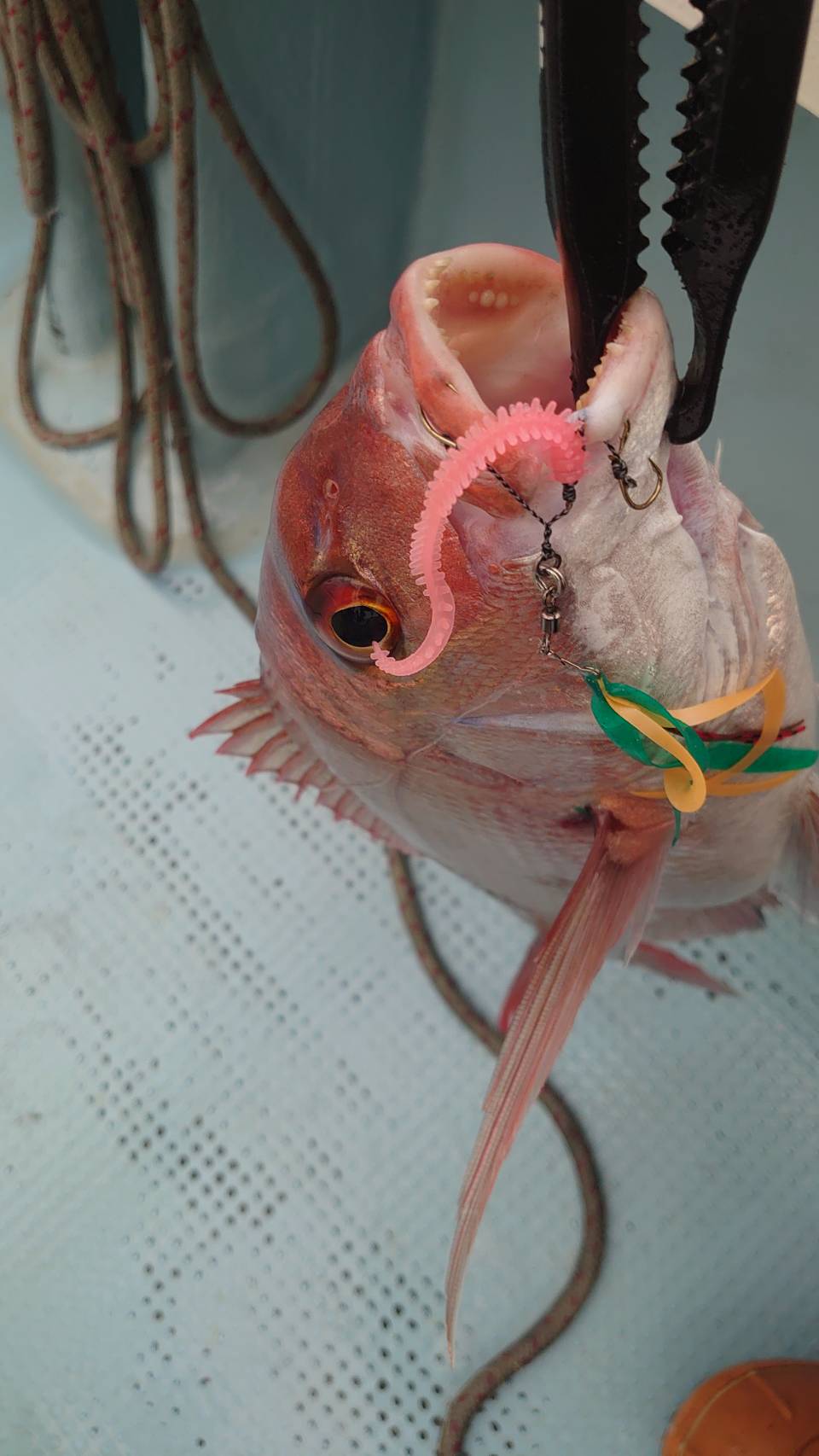 御前崎 華丸さんにてタイラバ釣行に行ってきました、フォースマスター200で電動タイラバで釣りをしました、クレイジーオーシャンのカチッとタイラバのシステムでネクタイだけアレンジしてダイワやスタートのネクタイを足してアピールアップさせ、3本針の一番上の針に海毛虫カーリーを付けました、釣り開始からカサゴが多いですがぽつぽつアタリがあり、最終的にマダイ3枚、良型レンコ2枚、カサゴ10匹近く釣る事が出来ました、竿はクレイジーオーシャンのオーシャンセンサータイラバB60を使用しましたが180gクラスのヘッドでも気持ち良く使え、掛かり良くバラシも少なく良かったです。
