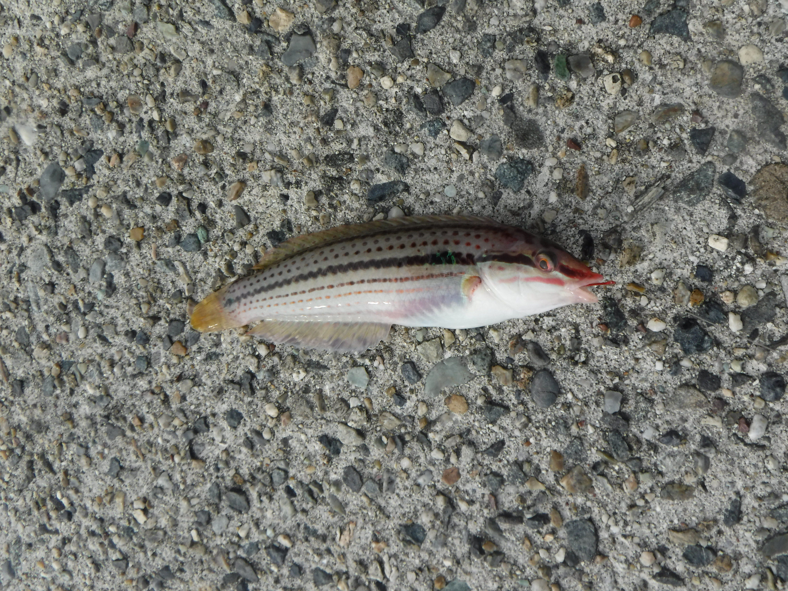 南知多周辺でちょい投げのキス・五目釣りに行ってきました。仕掛けはちょい投げ仕掛けの2本針で、オモリは3~5号を使用しました。仕掛け投入直後からアタリがあり、ベラ・キス・ハゼなどが釣れました。仕掛けを投げると必ずアタリがある状況で水温も上がり、魚も高活性でした。横で釣りをされていた方は、コアジが鈴なり状態で好調に釣れてました。
