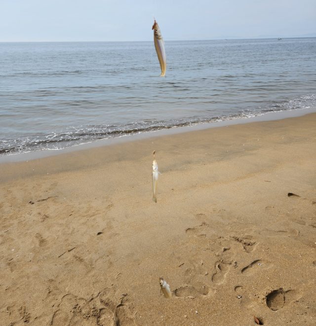 朝方に鈴鹿サーフにてキスのちょい投げに行ってきました!エサは青イソメ、天秤は8号の3本針仕掛けで狙いました。5時頃から釣れ出し投げれば毎回キスが釣れる日でした!サイズは10~15cm程が多いですが、20cmくらいのキスも釣れました。軽く投げるだけでバンバン釣れて簡単にできるのでファミリーの方にもオススメです!