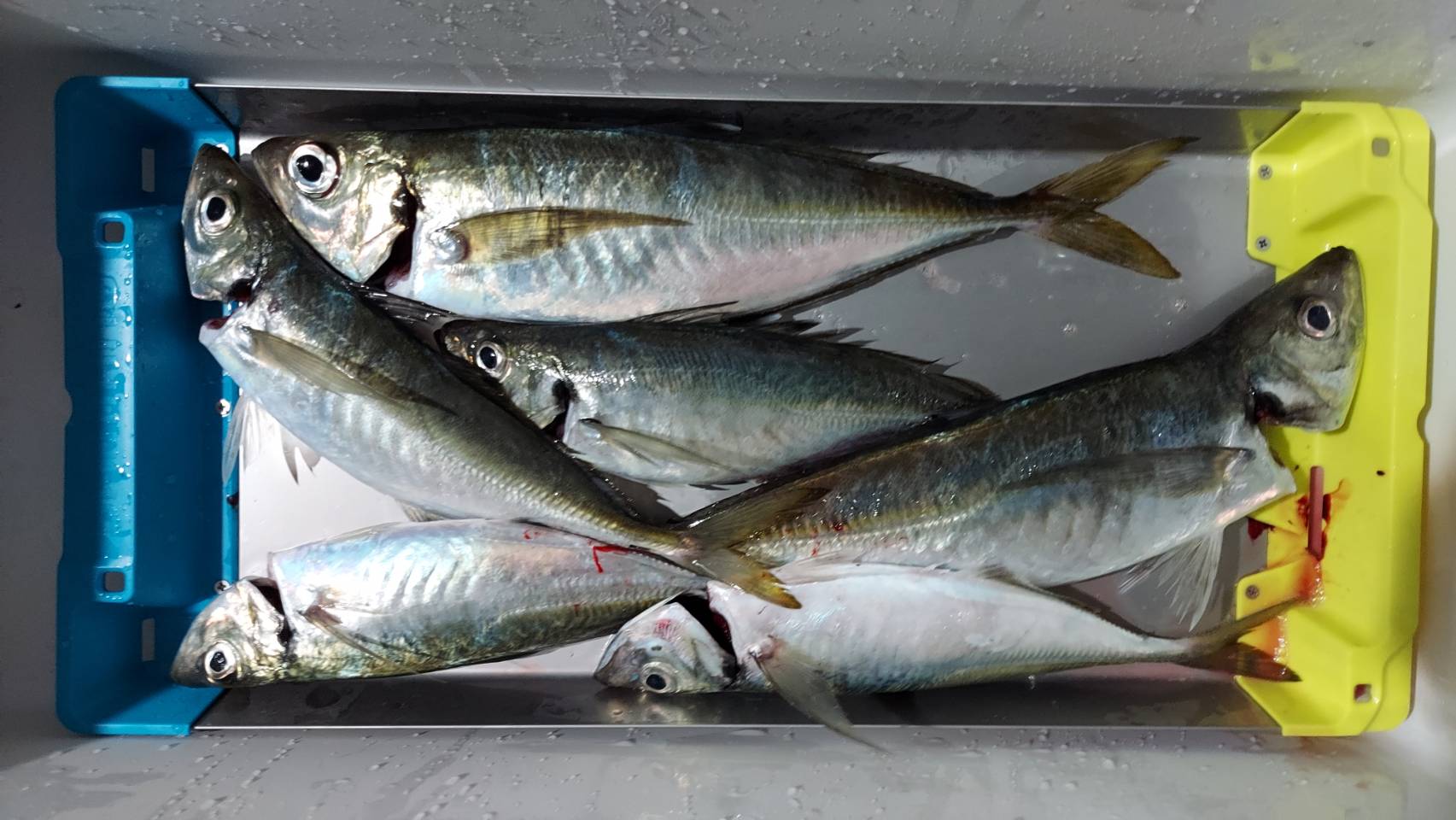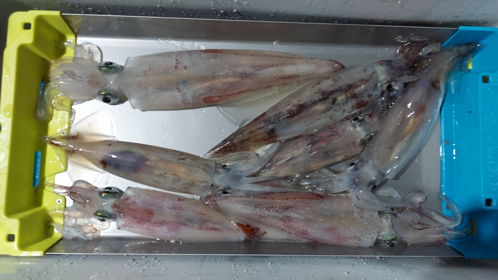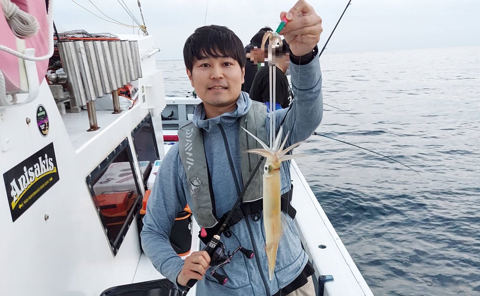 オーシャンクイーンさんにイカメタル、バチコンに行って来ました。17時30分集合で準備が出来次第出船です!大潮で潮は早いようで、メタルスッテやオモリの号数は20号指定です。陽が沈みかけた19時頃ぽつぽつ同船者の方に釣れ始めました。すると、グイーン!私にもヒット!この独特なアタリと引きがたまりません。漁火点灯までに2杯釣れましたが、点灯してからなぜか沈黙。水面ではサバのボイル!カモメの大集合で賑やかです。イカが釣れなくて、バチコンを始める方が続出。アジは終始爆釣のようです!どうしてもイカを釣りたい私は我慢!すると22時までにぽつぽつ釣れ、7杯。ここで、アジもお土産にと「海毛虫」の登場です。ボトムまで落とすとすぐにヒット!アクションはいりません。38cmぐらいの良型アジをゲット!22:50の終了までイカメタルも粘りました。イカメタル楽しい釣りです。掛け合わせる釣りが好きな方は絶対ハマる釣りです。興味のある方はやってみて下さい。オーシャンクイーン様は初心者の方を大歓迎で当日はグループや御夫婦で来られる方もいらっしゃり、女性も安心の船宿さんです!またお邪魔したいです。