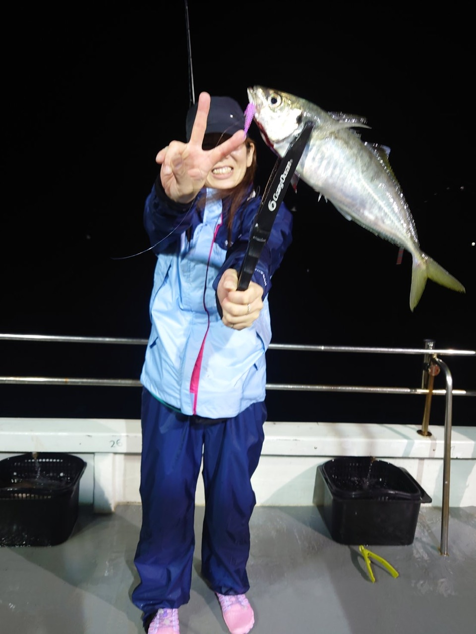 小浜の雲丸さんに久々にお世話になりました!イカメタルメインの予定だったのでしたがイカよりもアジの方が調子いいみたいでイカメタルよりもほぼバチコンメインでやることにしました。刈谷港店のスタッフ3人と私で行ってきました。この日は風も強かったのですが非常に幅広な船だったので揺れも少なく、快適そのものです♪バチコンはチャート系が調子いいみたいとの話でしたがこの日のヒットカラーはクレイジーオーシャンの海毛虫#109 クリアパープルラメ/UVでした!開幕して少ししてから当店スタッフもアジの強烈な引きに大興奮!初めてのバチコンに満足してくれたようです。サバも多い状況で終盤はサバの層を突破できればアジが当たるといった感じでした。イカの方はあまり調子が良くなかったですが皆が楽しんでくれましたので非常に満足のいく釣行となりました♪