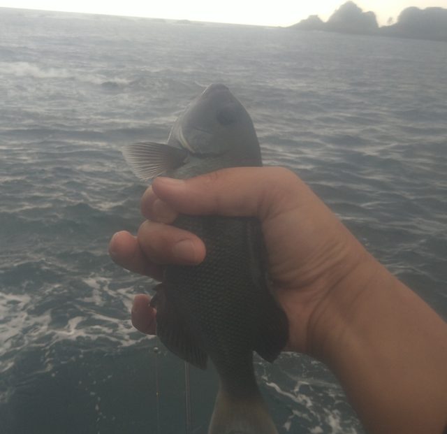 紀伊長島の一栄丸渡船さんに半夜釣りに行ってきました!ここ最近、グレ、イサキ、シマアジが絶好調です!当日は、波がある予報で釣行を迷っていましたがレッツゴーです!13時に出船!沖に出るとやっぱりかなりの波が…..。大島方面には行けず久々の上手周りです!ゼニバコに渡して頂きました!初渡礁です!前の瀬から乗り越えてくる波で一面サラシです!ゆっくり準備してスタート!エサは取られるものの針掛かりしない。少ししてアイゴ!そしてタカノハダイが2連発…..。3B仕掛けから1号仕掛に変更し仕掛けを落ち着かせると良いアタリ!重量感あり左のシモリに一直線。痛恨のバラシ。その後は、夕方のゴールデンタイムはコッパグレの連発で終了。持ち帰り魚は無しです。波の高い日が続きますが波さえなければ好調の磯へ行け爆釣できると思いますよ!