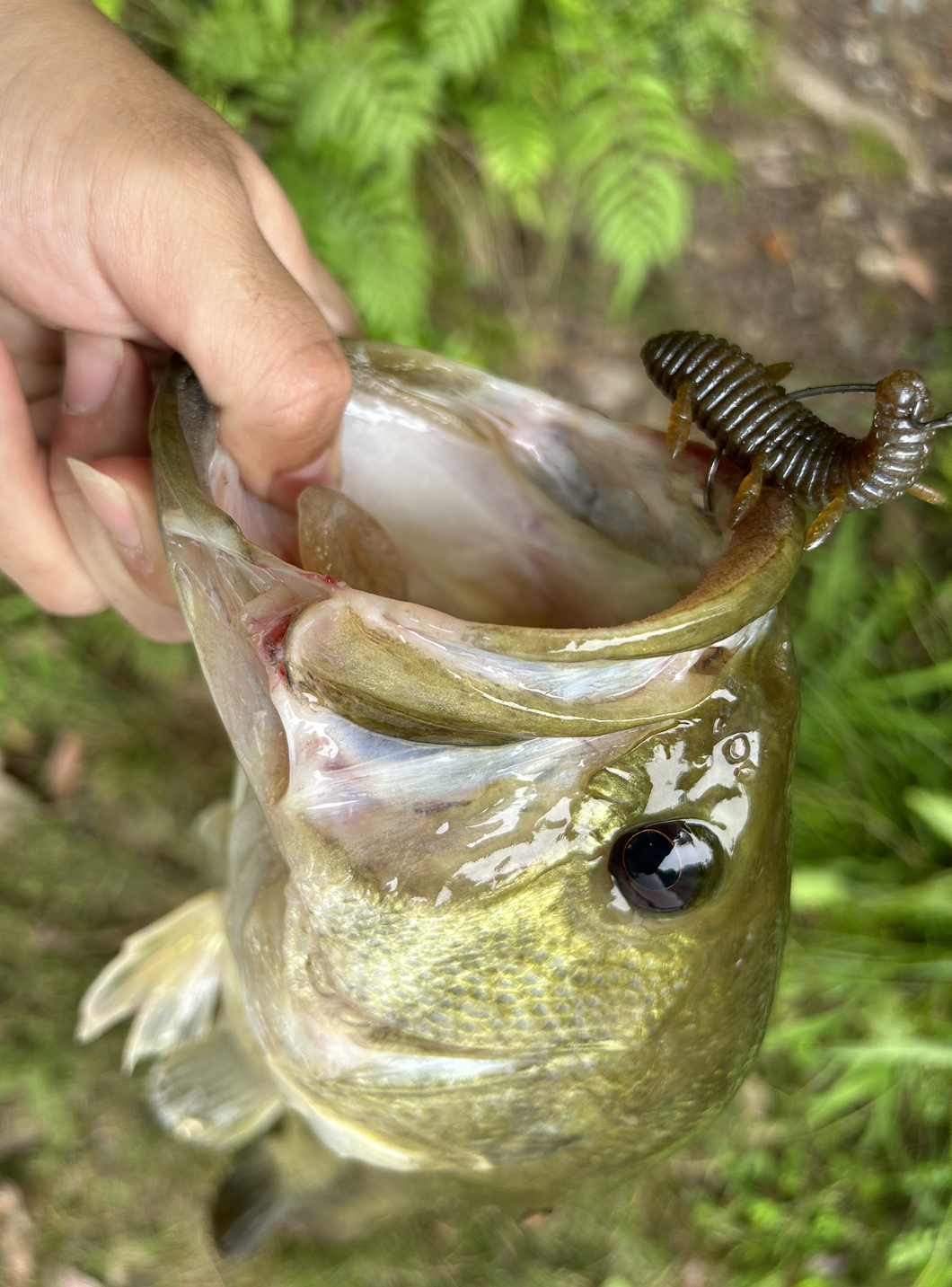 これは、、、。とりあえず同じポイントの弱そうなツルを目掛けてキャスト、着水バイトとまではいきませんでしたがツルに吊るして水面でぴちゃぴちゃさせているとガバっと派手なバイト!!