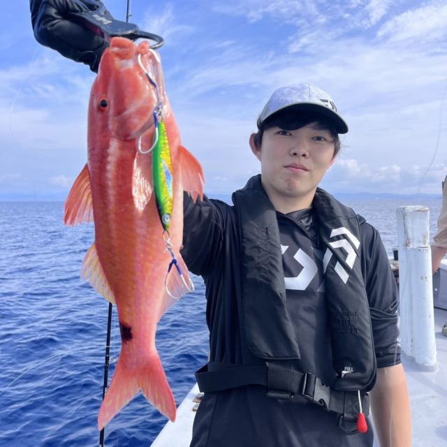 開始すると速攻TGベイトのミドキンに当たりが、アカハタでした。リリースサイズが多く、クーラーに中々入りませんでした笑